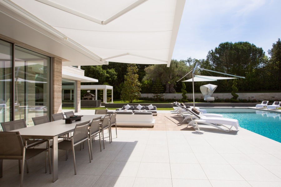 Retractable awnings are the most popular type of outdoor shades. They offer a space-saving solution to your backyard or terrace, as they can be rolled or folded up. With this type awnings, you will be able to keep solar rays and rain away, as they can be stored away during inclement weather.