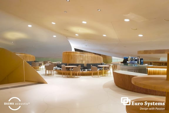 Our seamless acoustic ceilings come in a wide range of colours and finishes. BASWA acoustic systems adapt to any type of architectural designs and offer limitless possibilities with high-quality aesthetics.