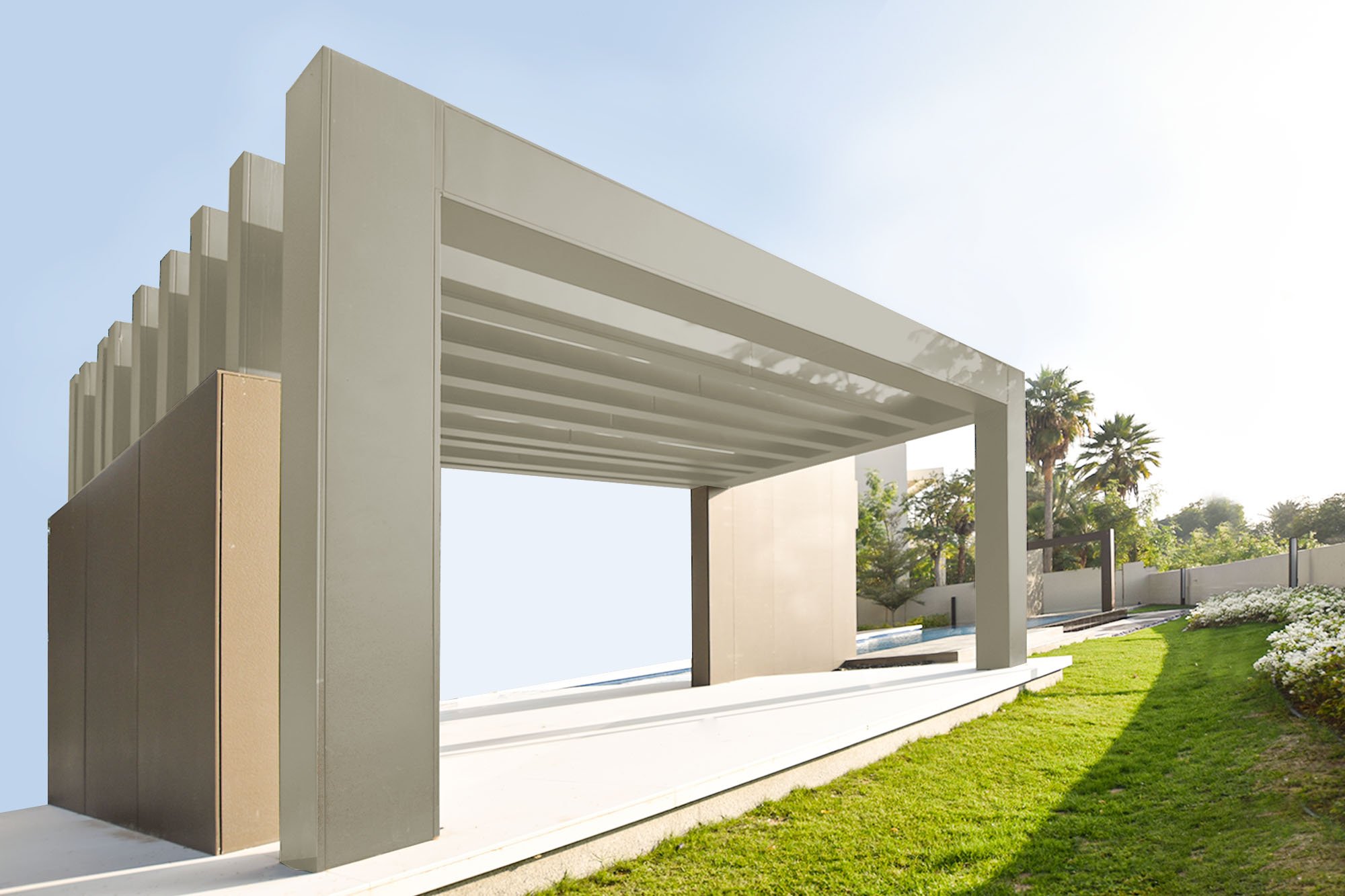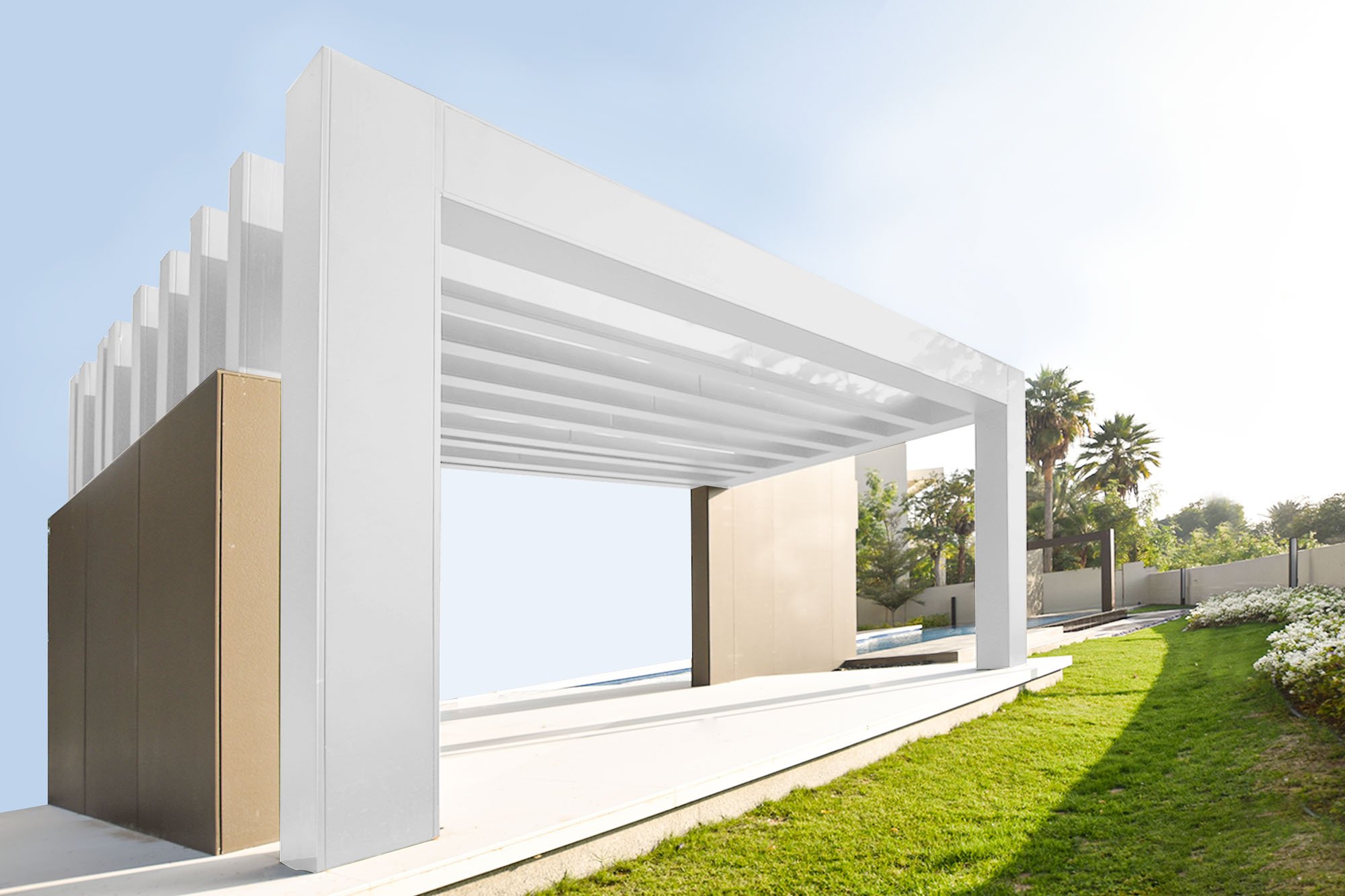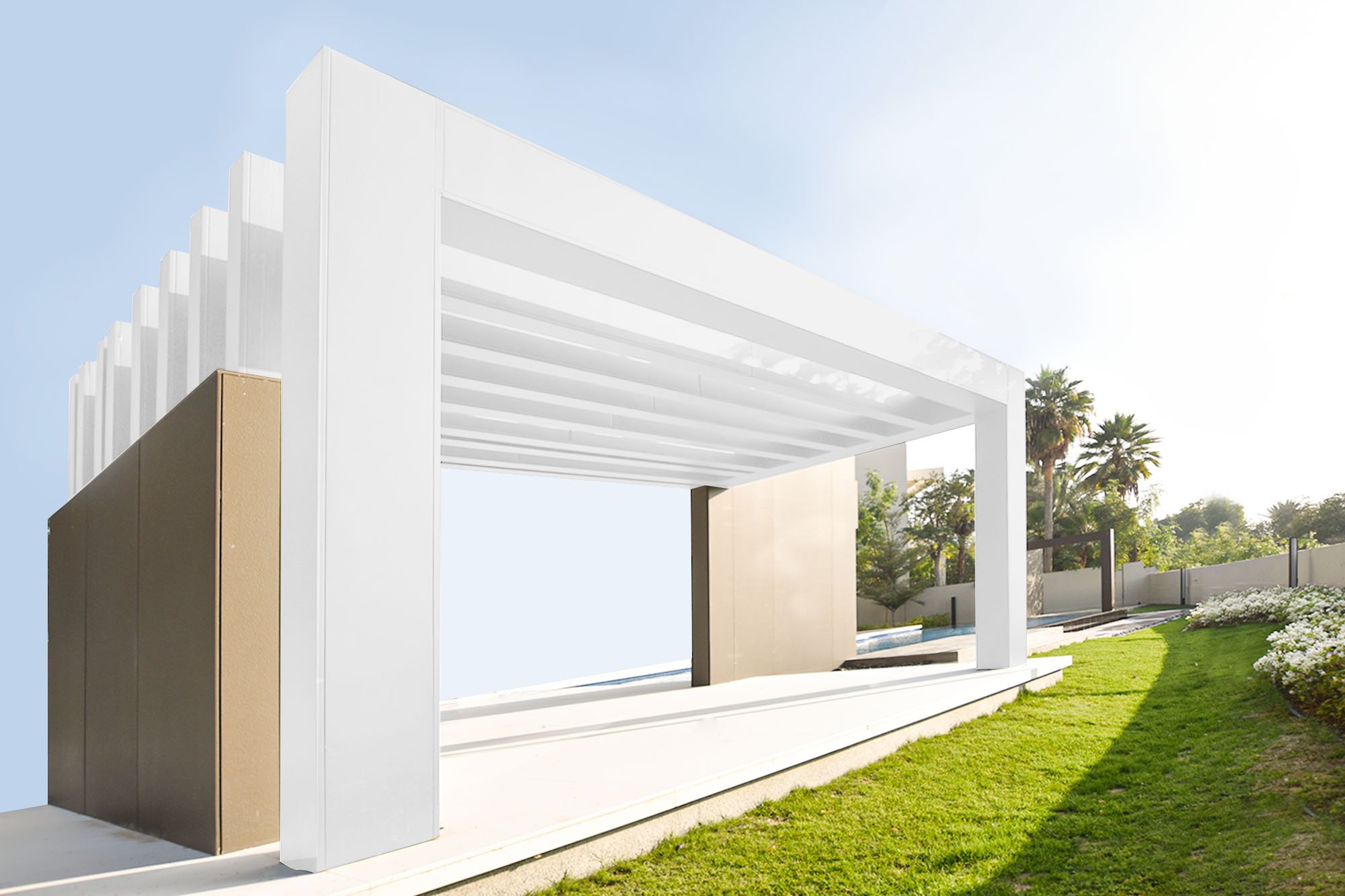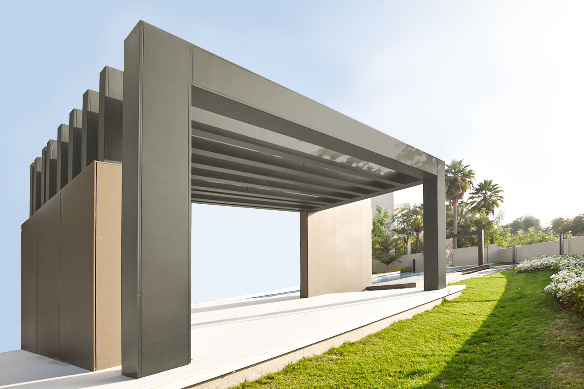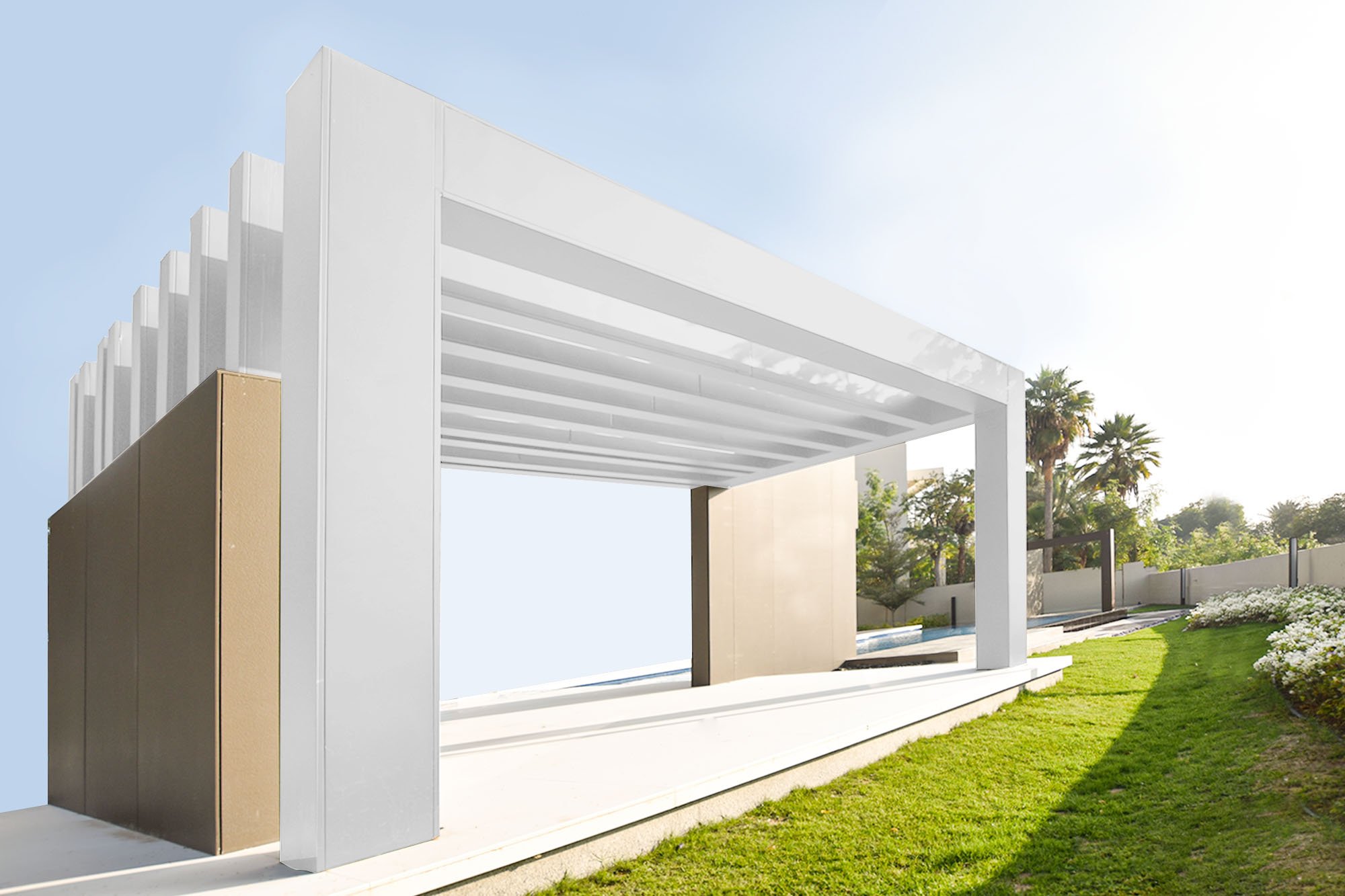 Available as a self-bearing or leaning pergola, providing design versatility and durability.