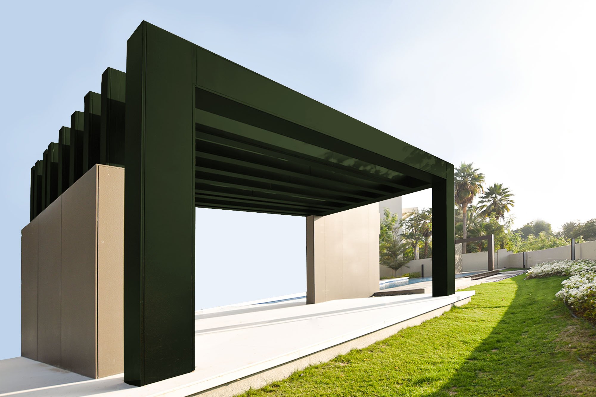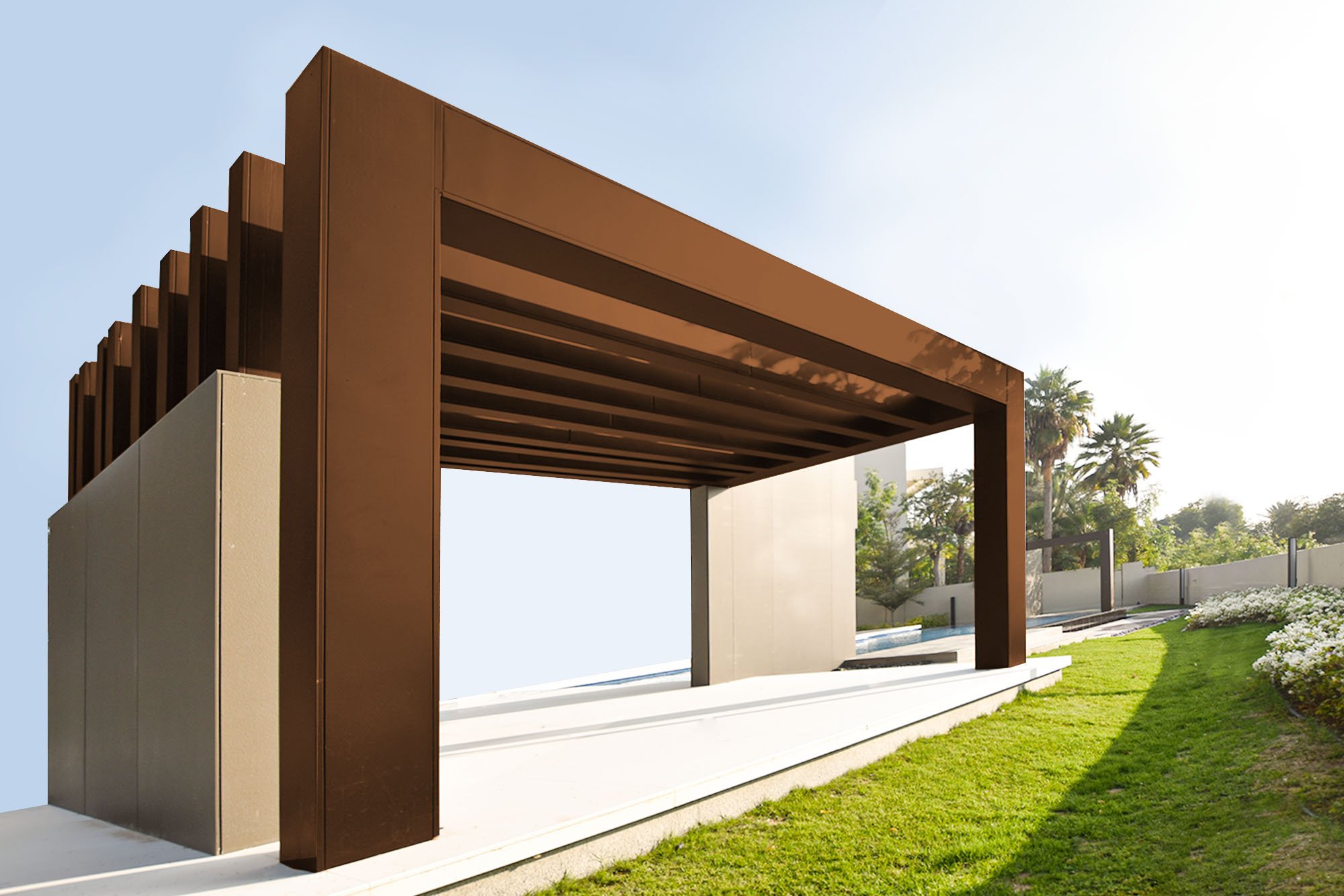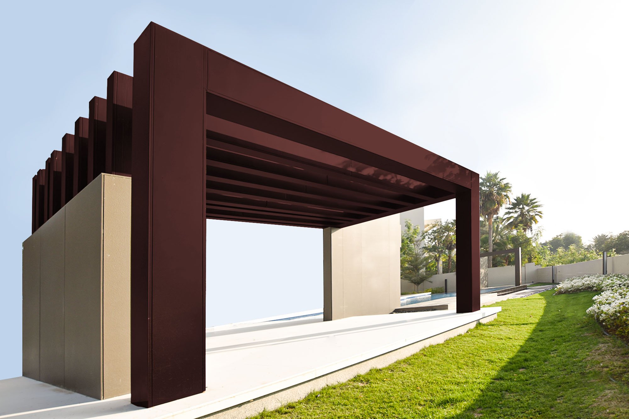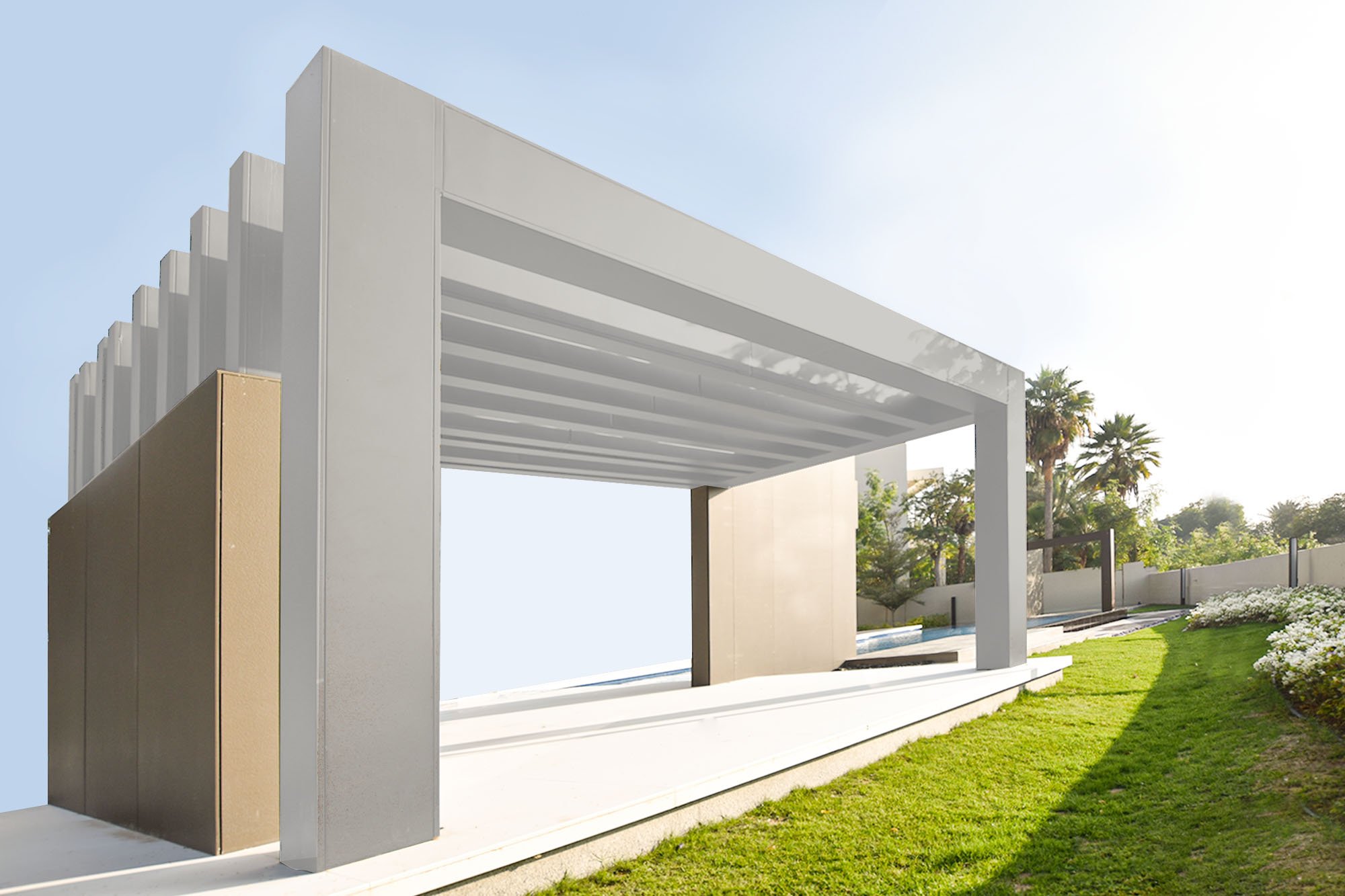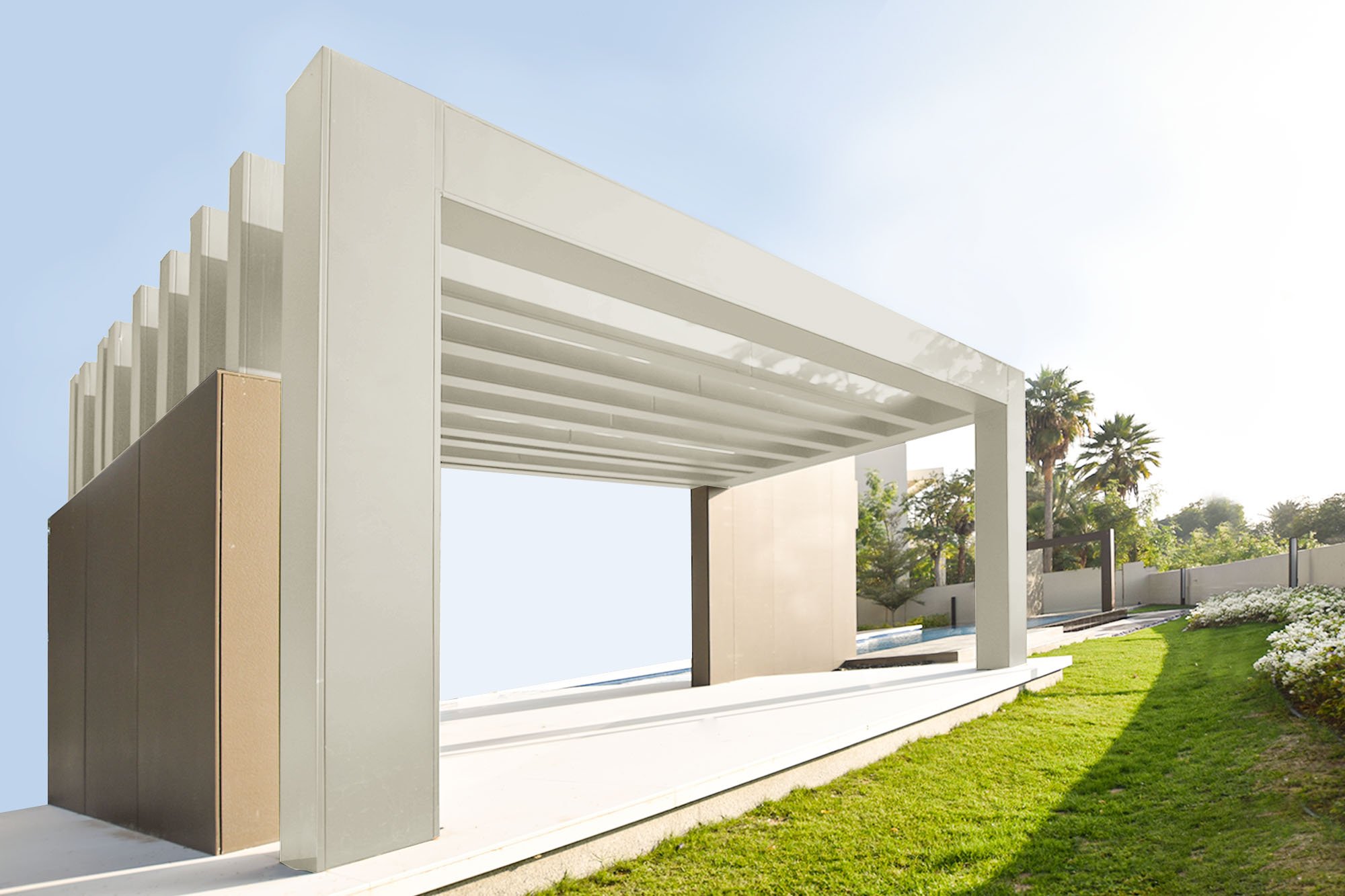Available as a self-bearing or leaning pergola, providing design versatility and durability.