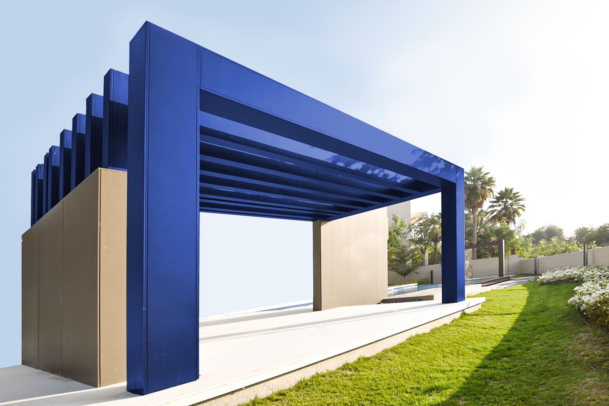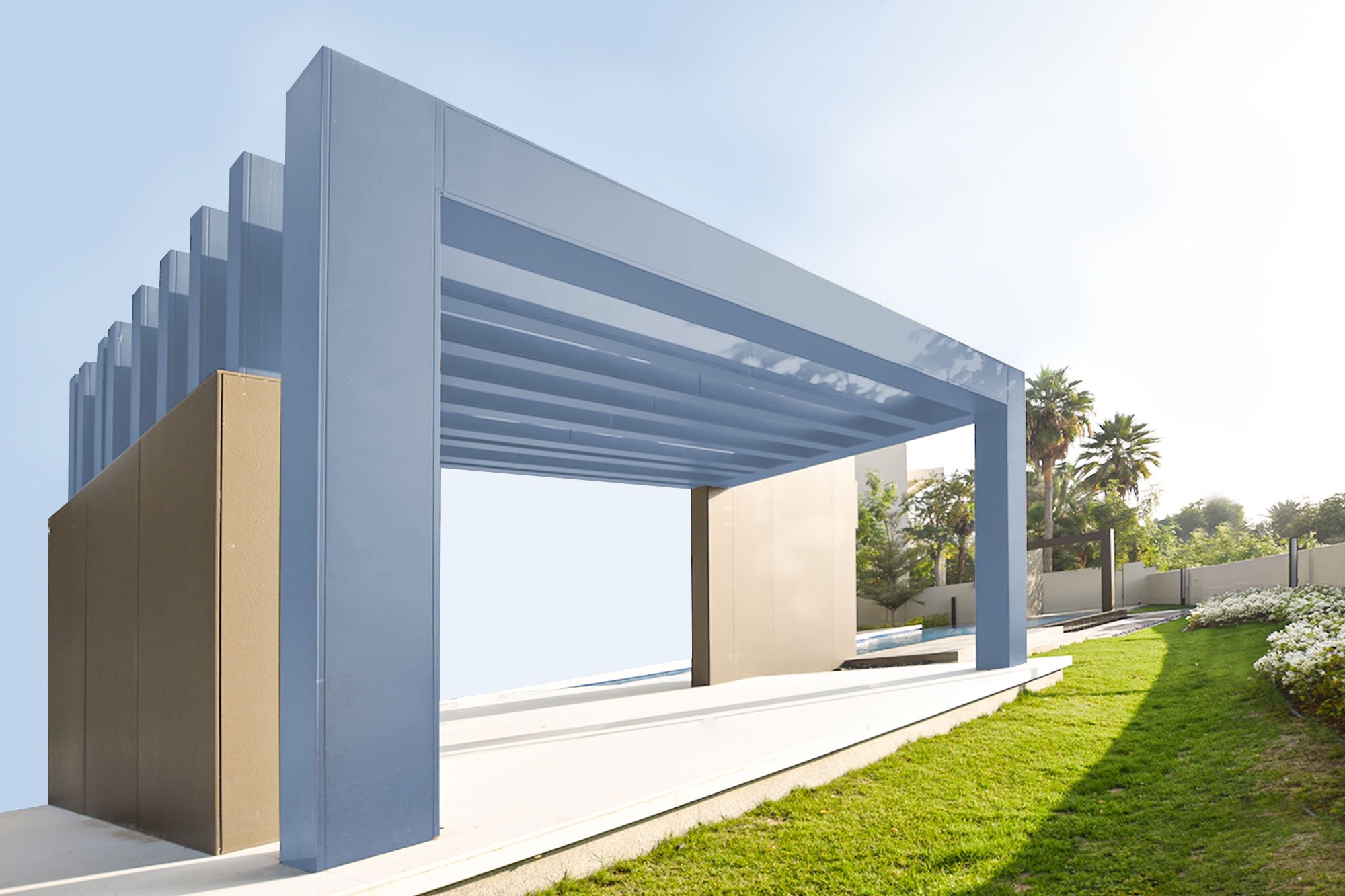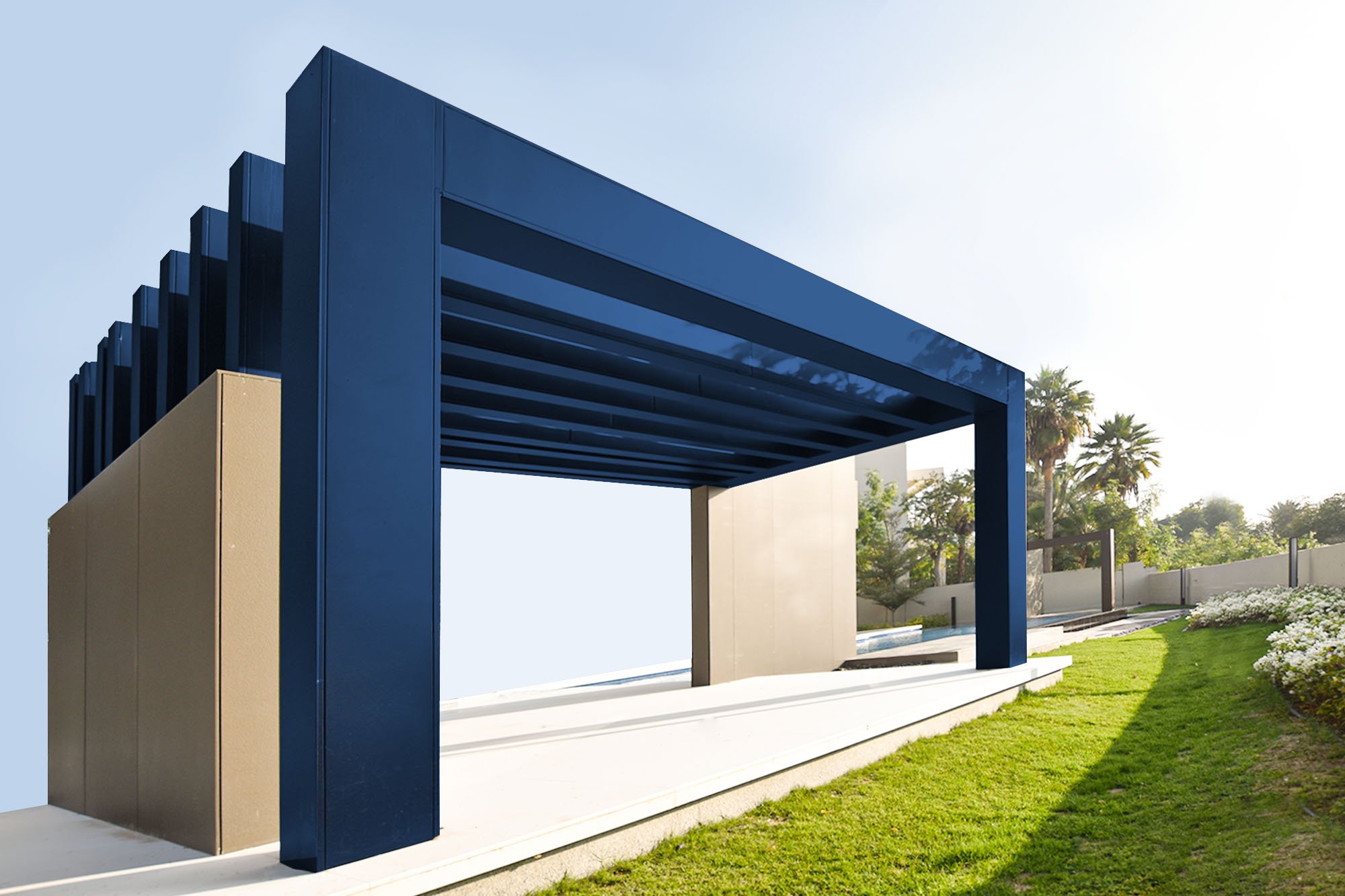 Euro Systems® presents Azure, a fixed aluminum pergola ideal for residential and commercial contemporary spaces. Its minimalist design and customizable RAL color options allow it to seamlessly blend with various architectural styles. The fixed blades, available in rectangular or elliptical shapes, offer superior solar shading and thermal comfort. Made from extruded aluminum profiles, Azure transforms outdoor spaces into functional areas. Engineered with high-end materials and finished with seaside-class powder coating and pre-anodizing treatment, it provides exceptional corrosion resistance, especially in coastal environments. Available as a self-bearing or leaning pergola, Azure offers both durability and design versatility for modern outdoor living.