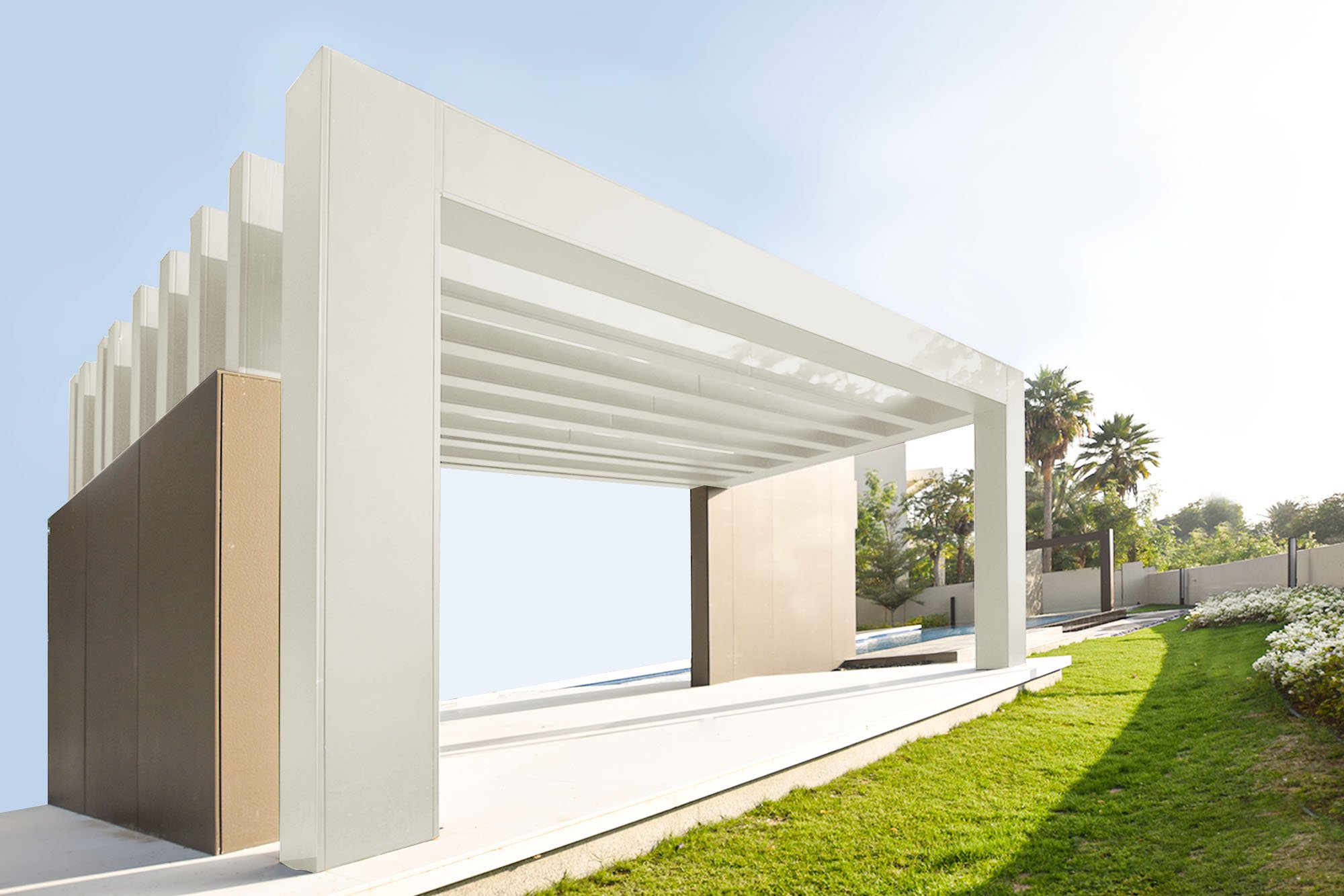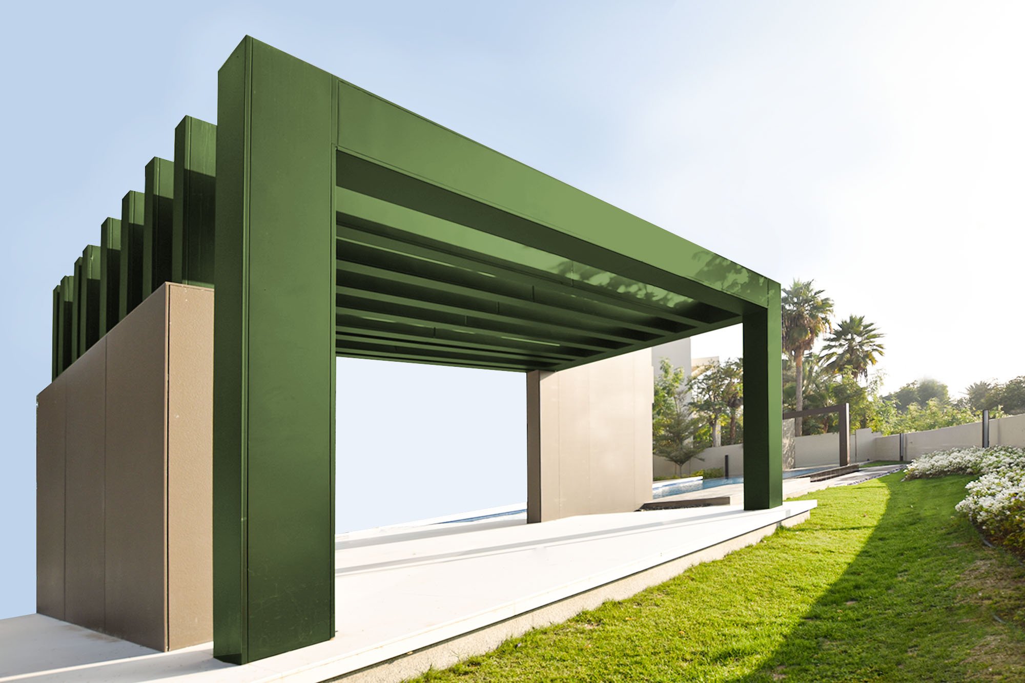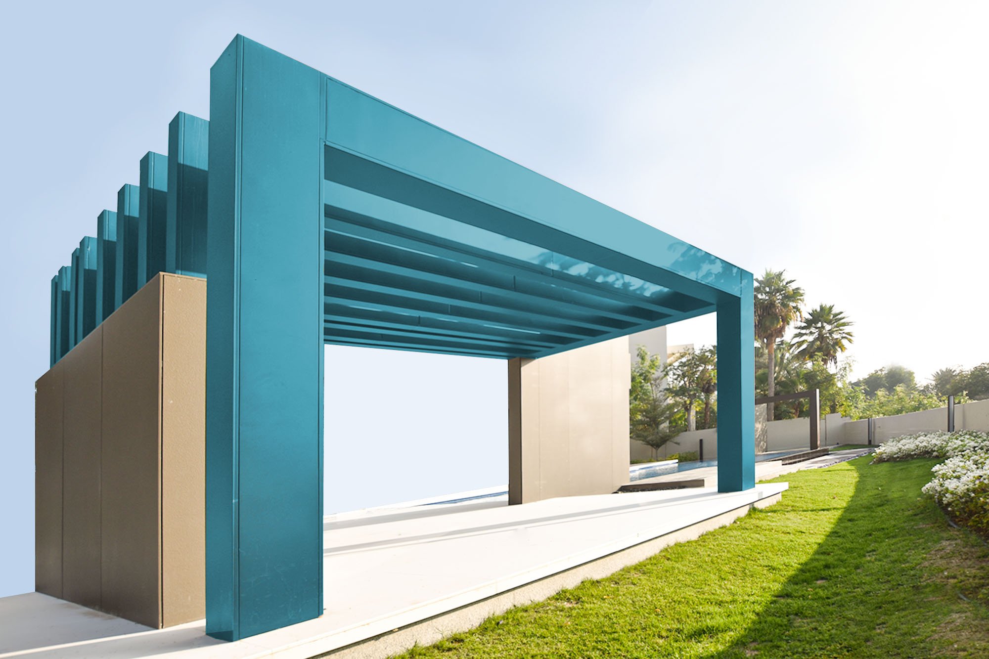 Euro Systems® presents Azure, a fixed aluminum pergola ideal for residential and commercial contemporary spaces. Its minimalist design and customizable RAL color options allow it to seamlessly blend with various architectural styles. The fixed blades, available in rectangular or elliptical shapes, offer superior solar shading and thermal comfort. Made from extruded aluminum profiles, Azure transforms outdoor spaces into functional areas. Engineered with high-end materials and finished with seaside-class powder coating and pre-anodizing treatment, it provides exceptional corrosion resistance, especially in coastal environments. Available as a self-bearing or leaning pergola, Azure offers both durability and design versatility for modern outdoor living.