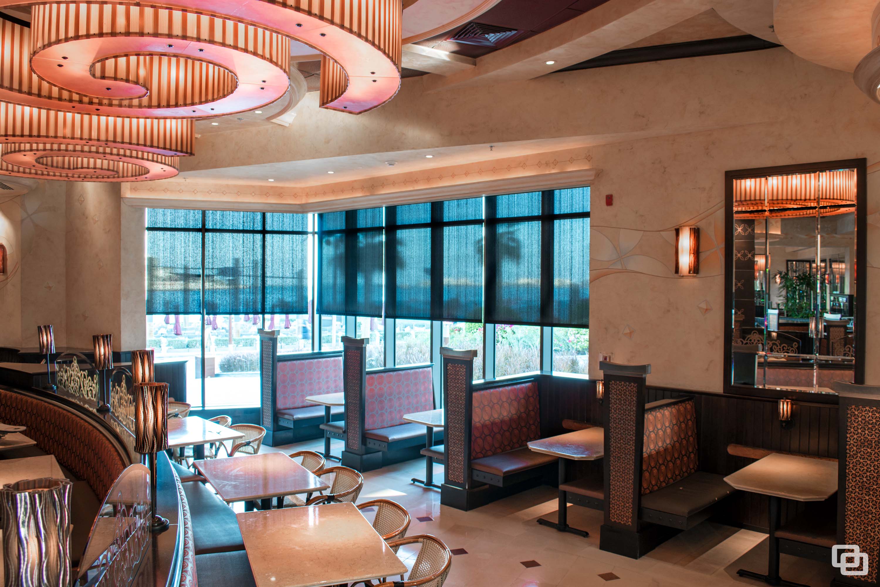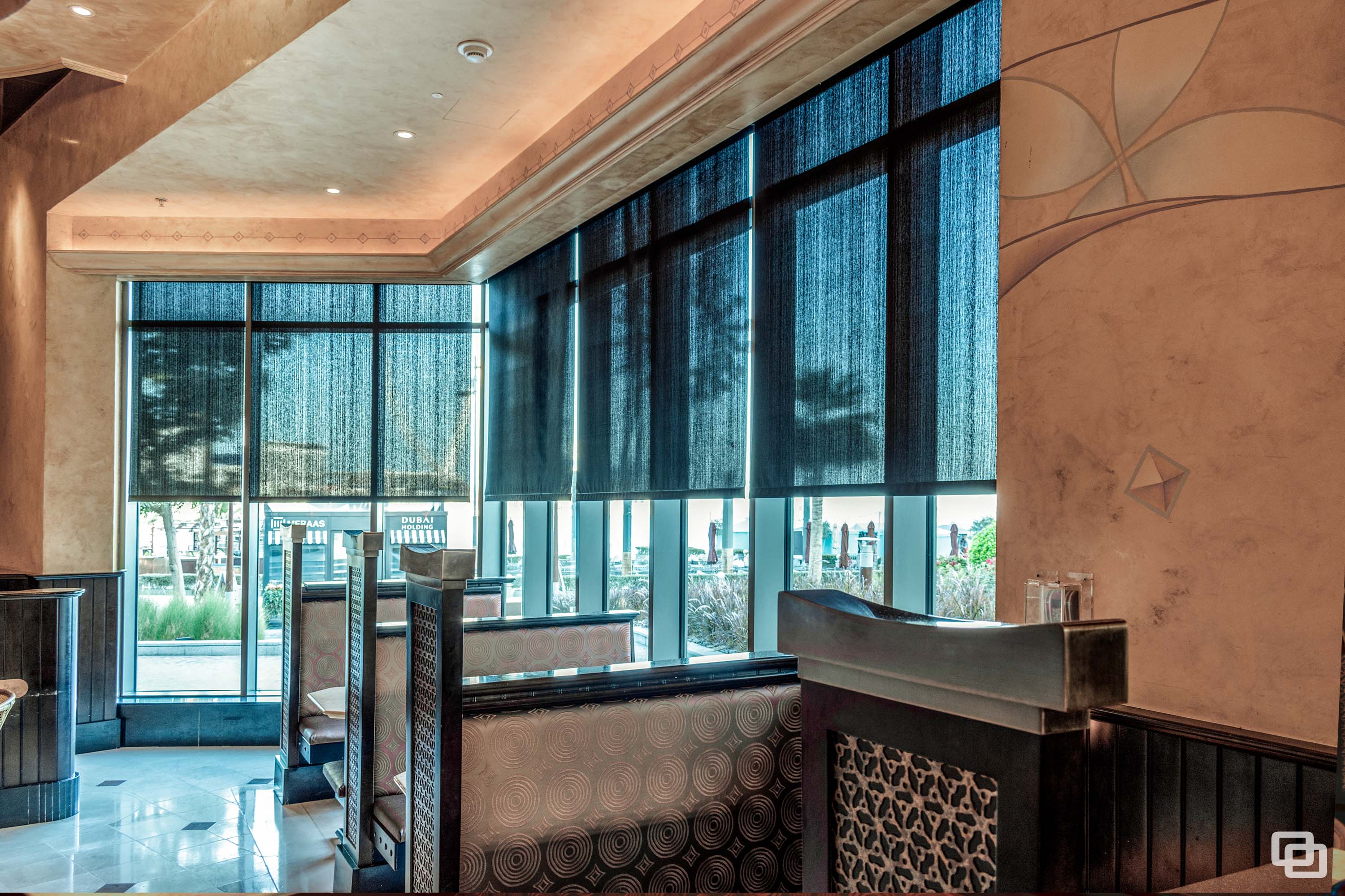 The Cheesecake Factory, Dubai is an American diner restaurant specializing in desserts and ice-creams. Our team installed Motorized Roller Blinds.