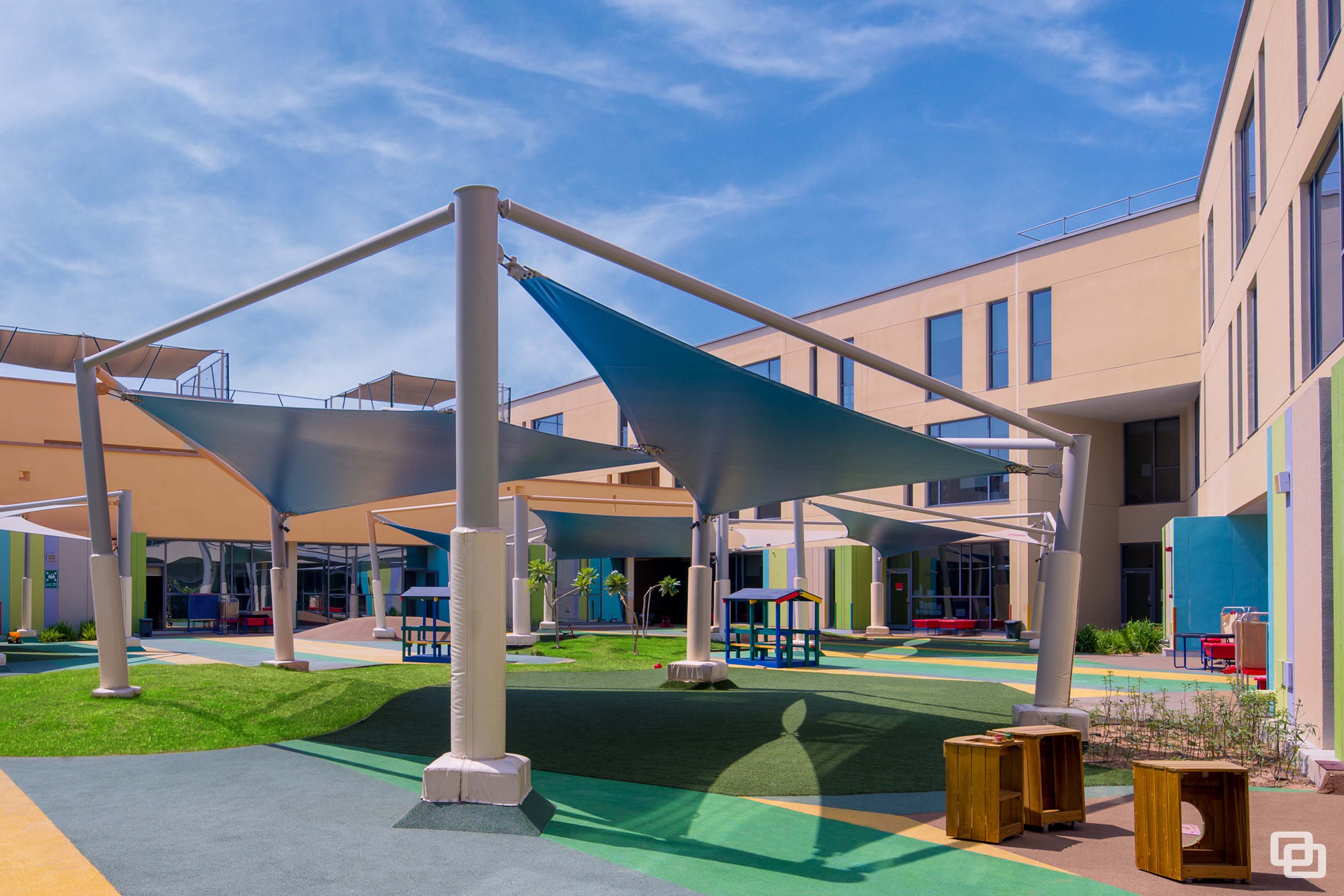 Emirates International School is a private school located in the area of Jumeirah, Dubai. Our team installed Sail Shades. We specialize in outdoor shading for the education sector.
