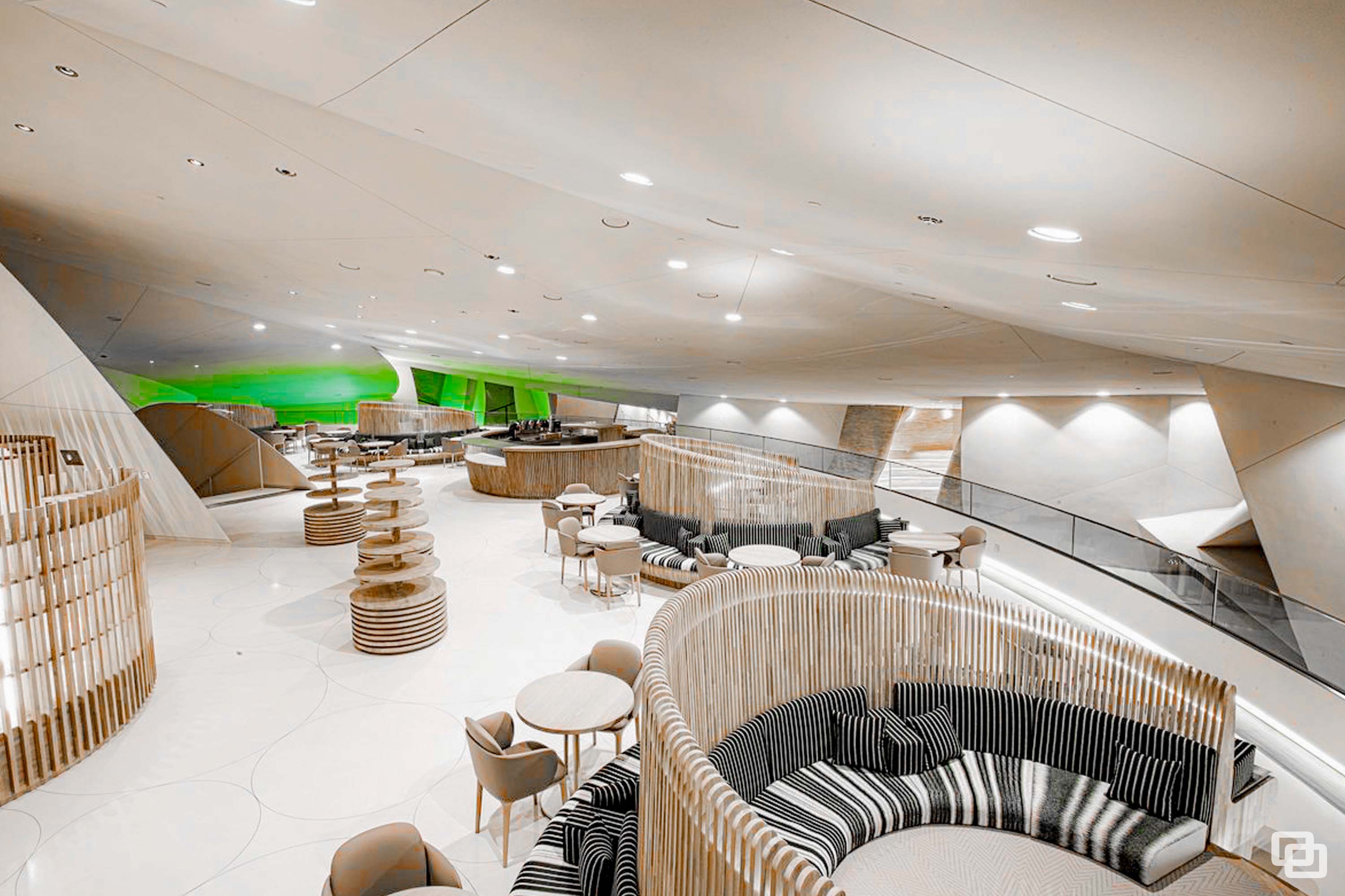 The National Museum of Qatar is a vibrant hertitage museum located in Doha. Our teams installed Baswa Acoustic Ceiling. We specialize in acoustic solutions for public spaces. we used BASWA 30mm thick - Classic Top finish,RAL 9005 - Black, RAL 5008 - Blue, QNM7 - Beige ( special colour approval),