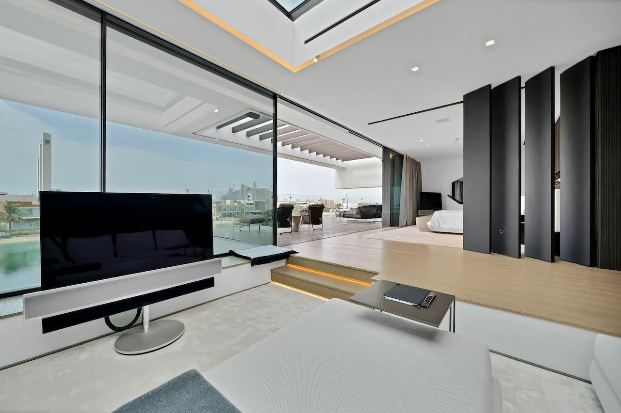 Situated on one of the most prized fronds on the Palm Jumeirah, Dubai Villa Allegra was given its name, which means "happy" and "lively" in Italian, to perfectly capture its essence. Amongst our architectural systems to be installed was Gracili 25 Series Minimal Sliding Door, Fall Protection and a spectacular Skylight window which opens up to the heavens.
