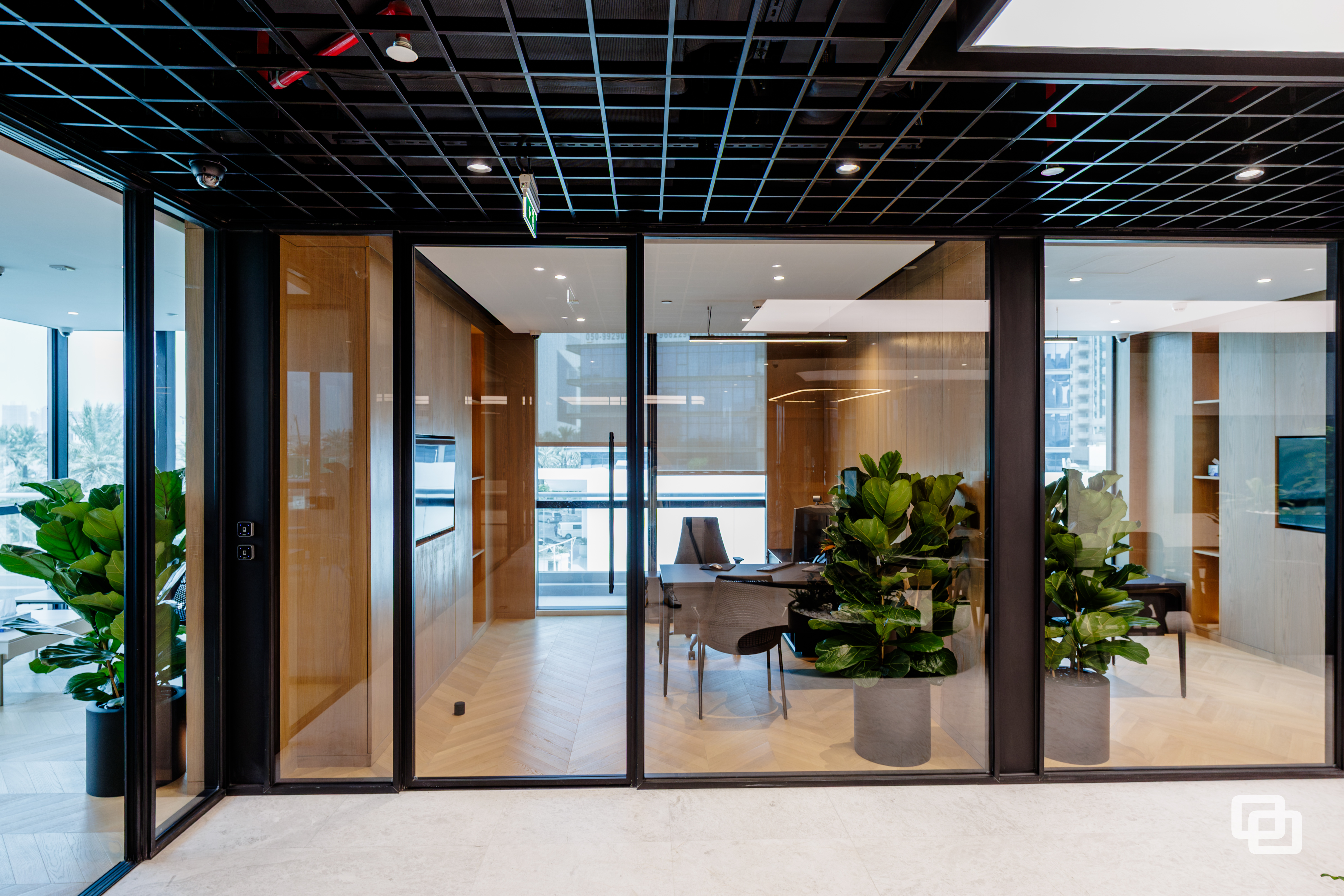 Frameless Glass Partition, Salire® Manual Roller Blinds, Serena® Motorized Roller Blinds, - Doors & Windows -, Commercial , UAE