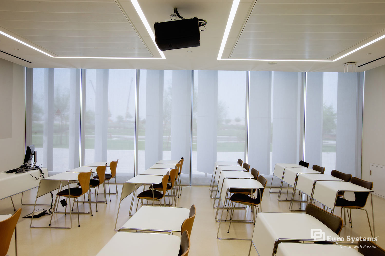 The Qatar Faculty of Islamic Studies (QFIS), is located on the Education City Campus, Doha, Qatar. The scheme provides world class teaching and faculty space for Islamic studies. Our team installed Motorized Roller Blinds. We specialize in interior shading for the education sector.