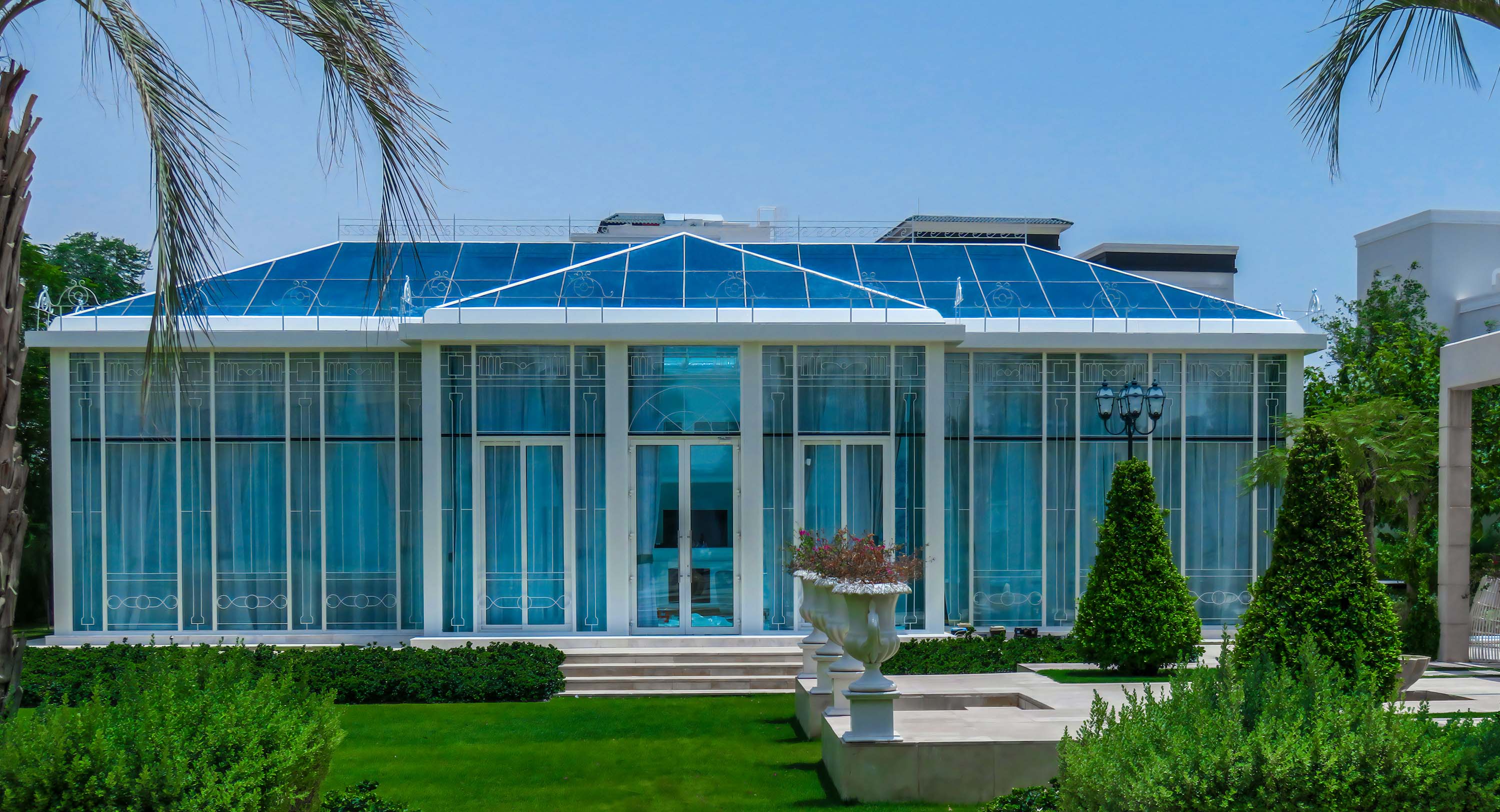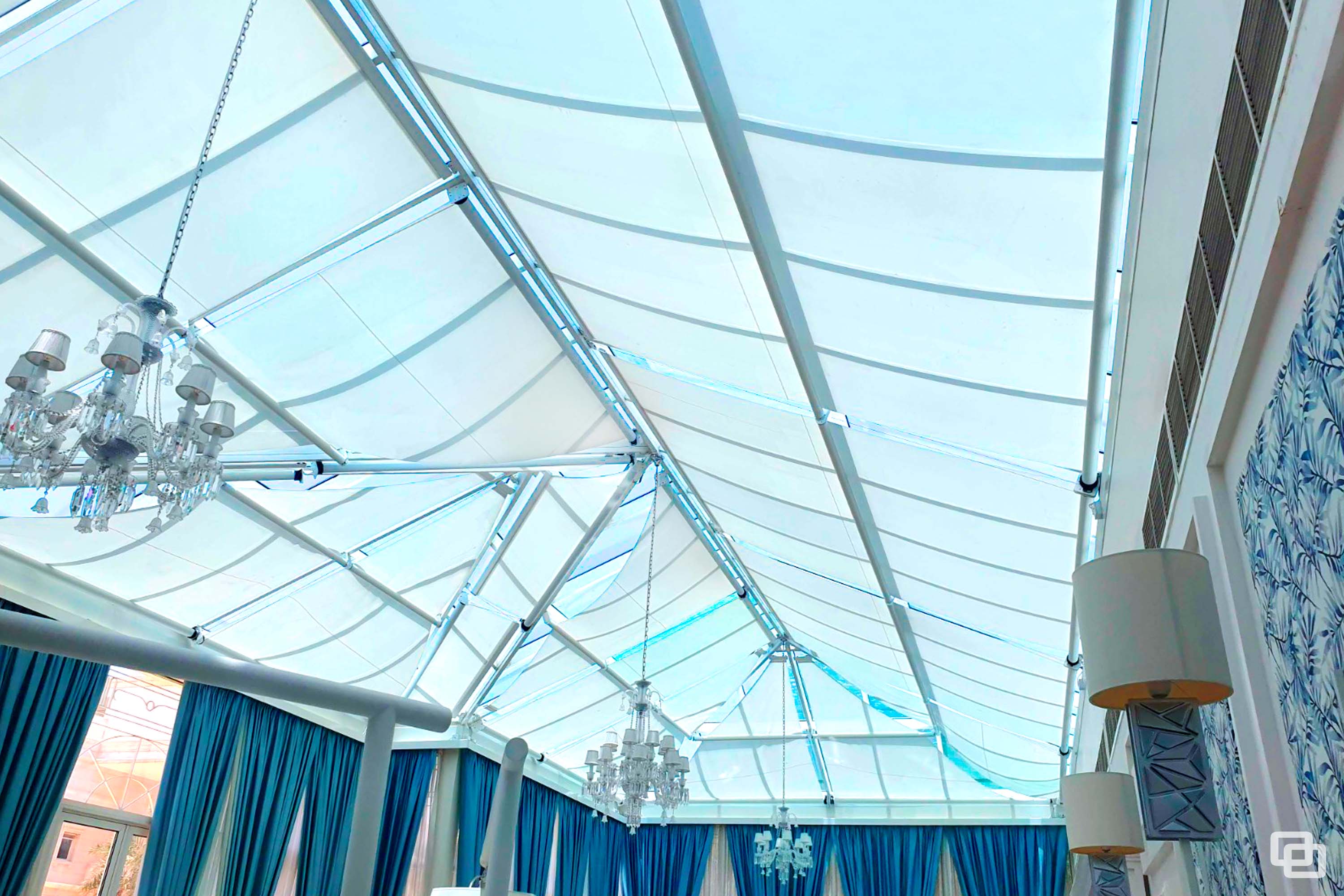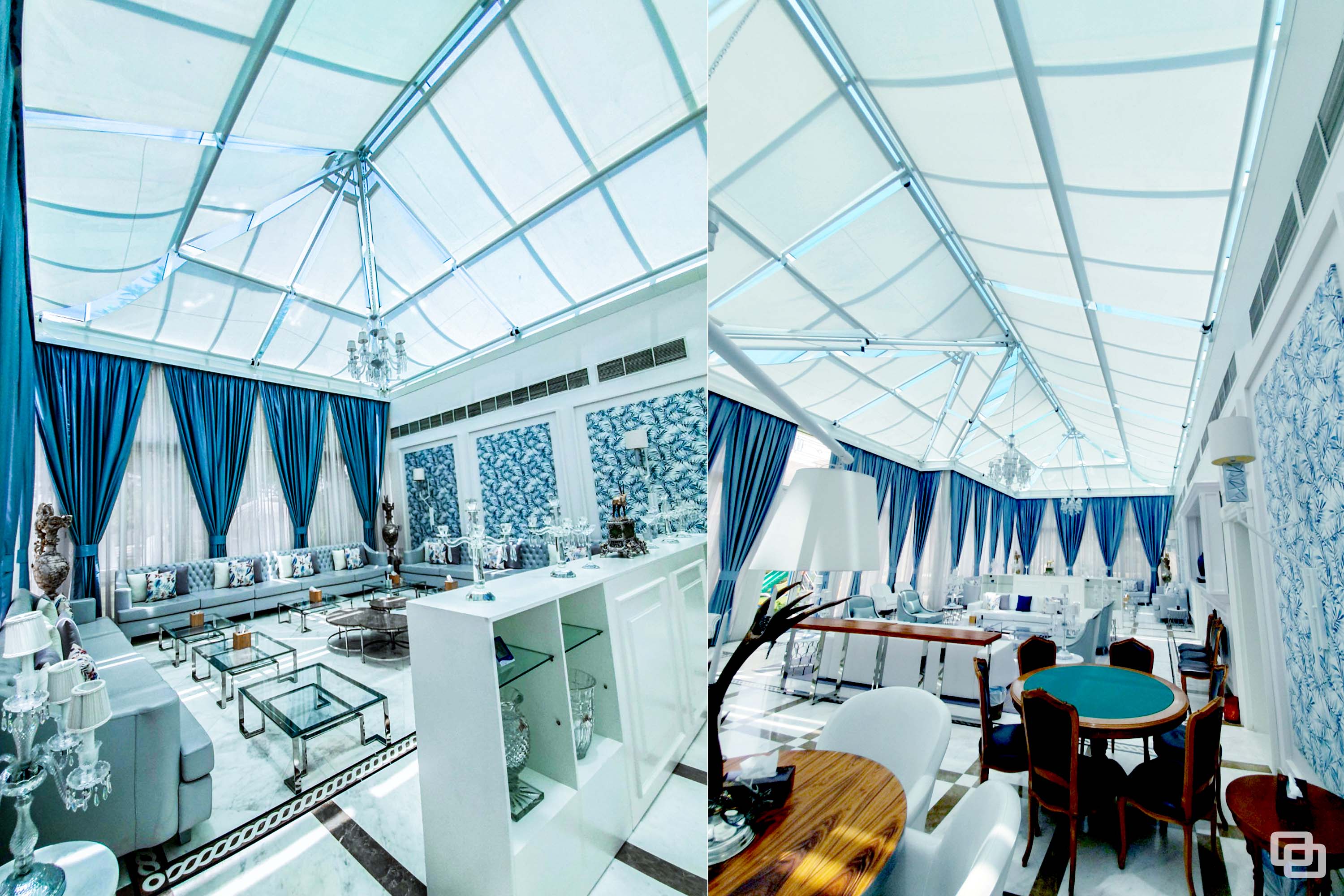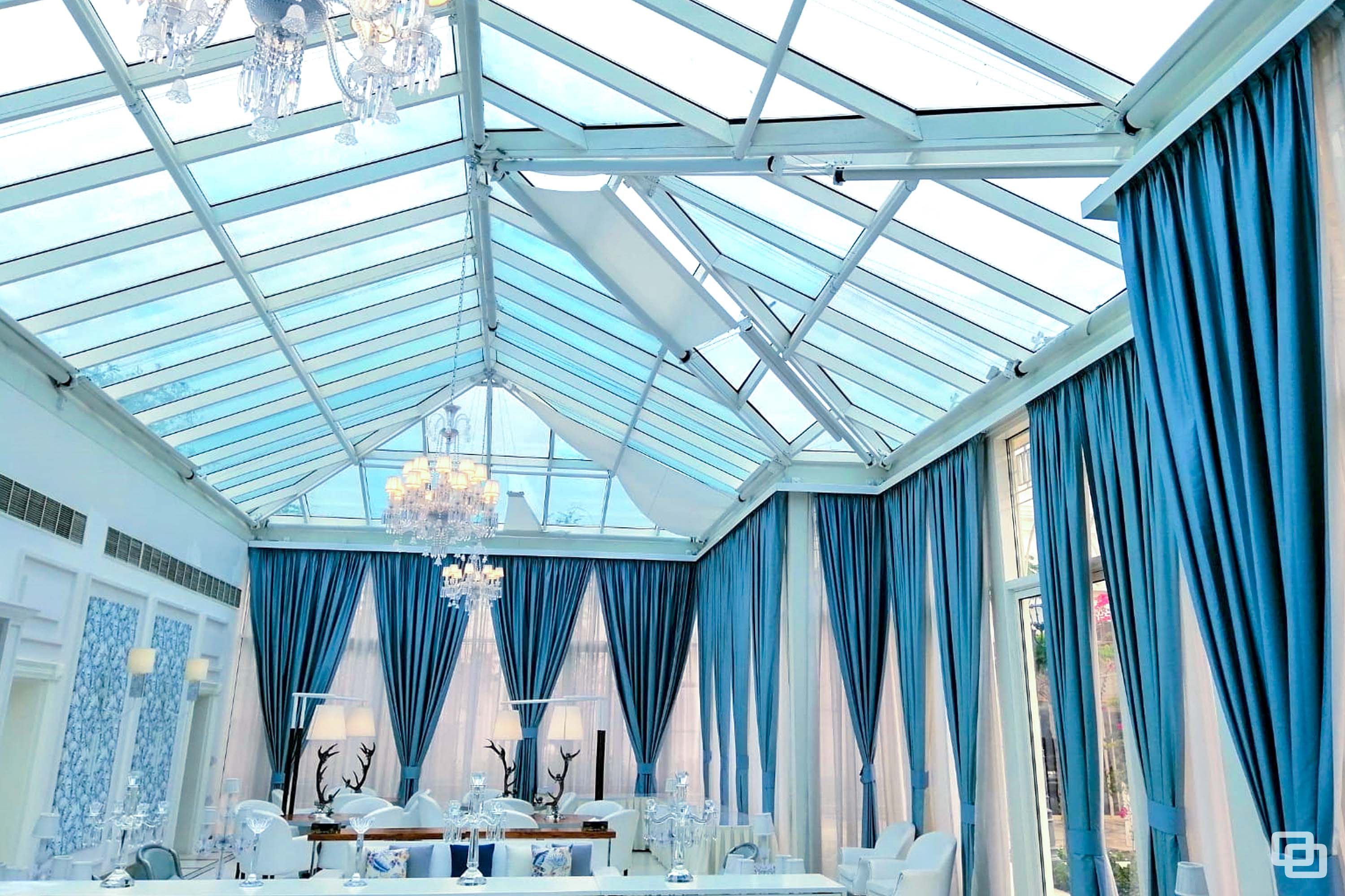 The Glass House located in Doha, Qatar is an upscale all-day dining restaurant. Our architectural team installed Glass House, and Solange® Specialty Shades.