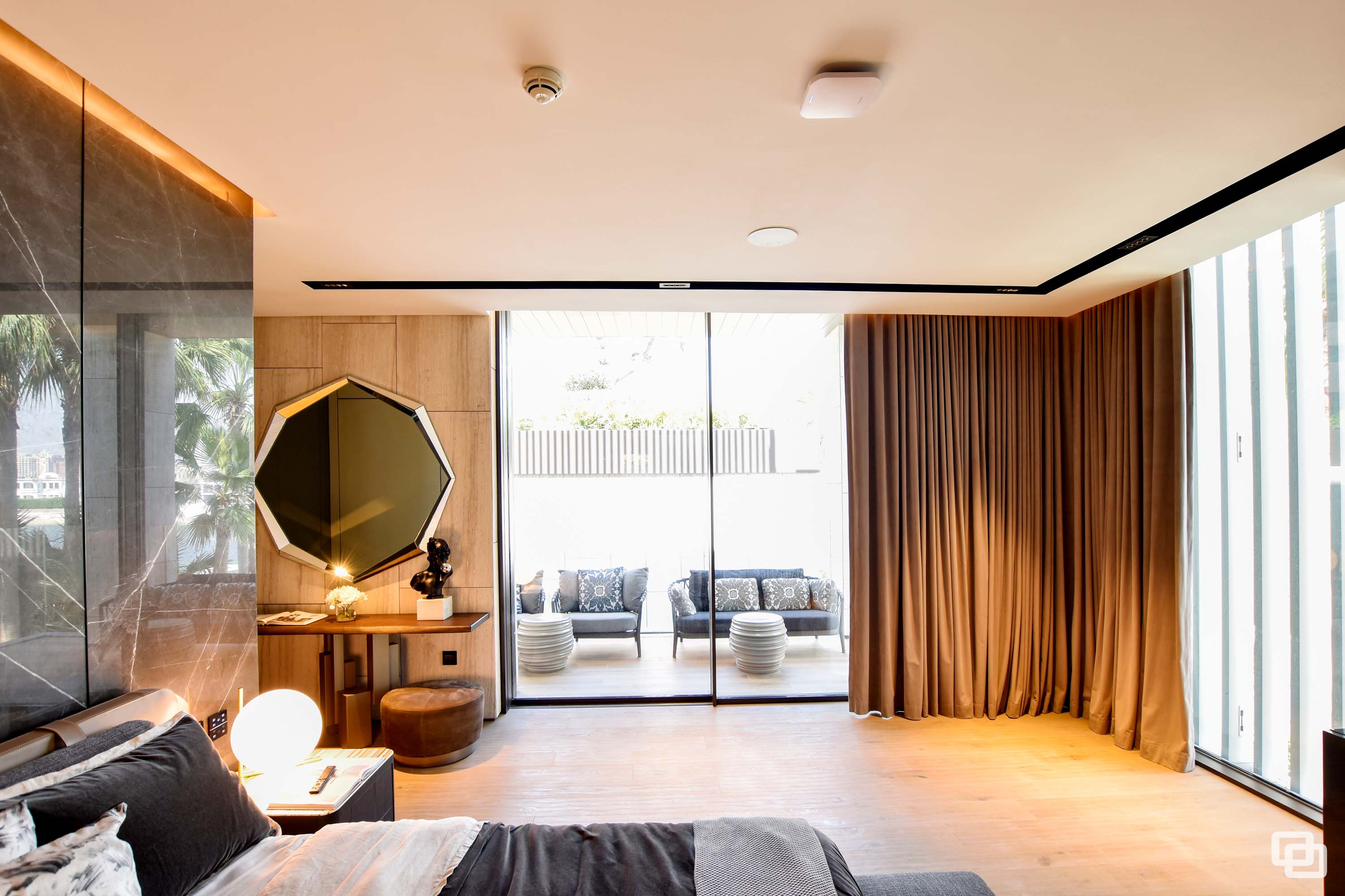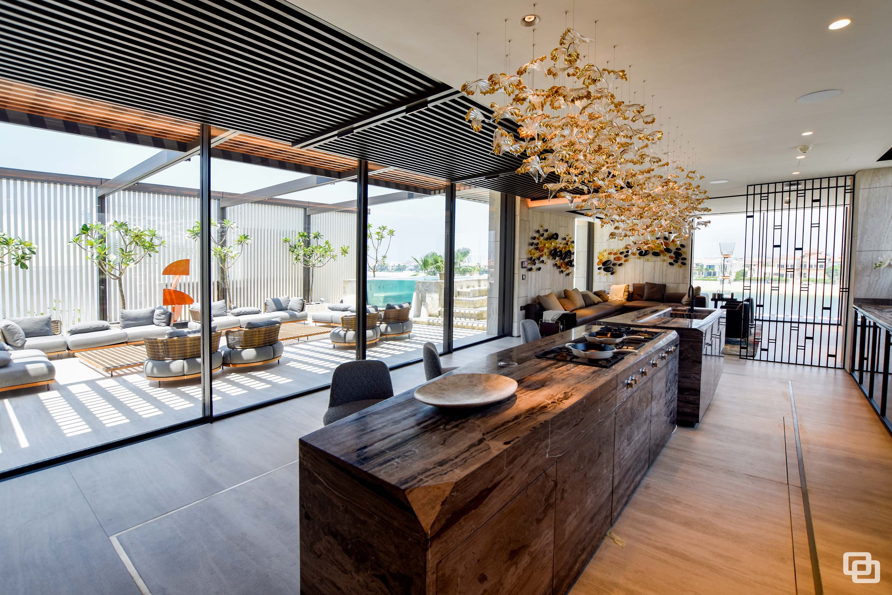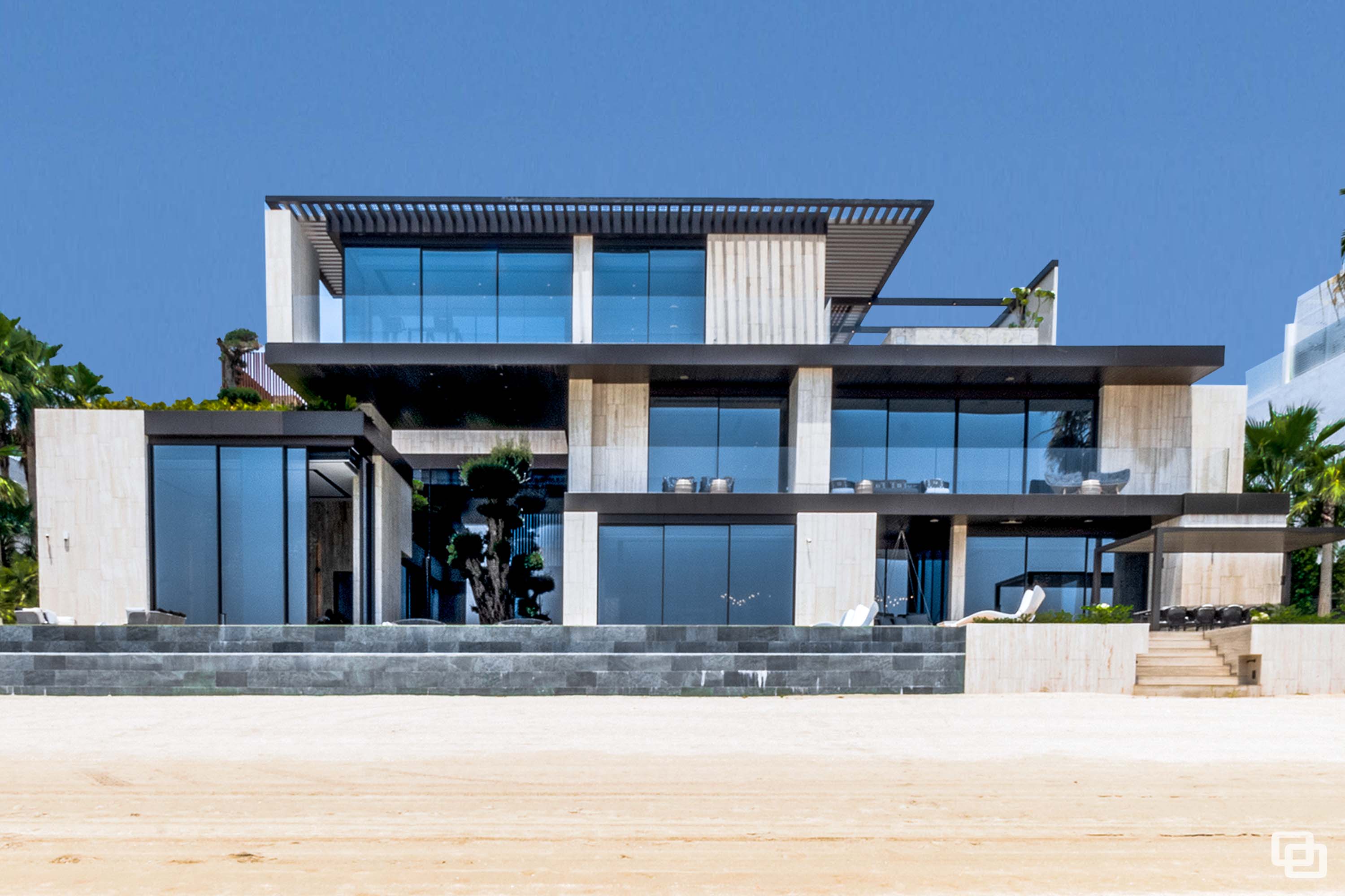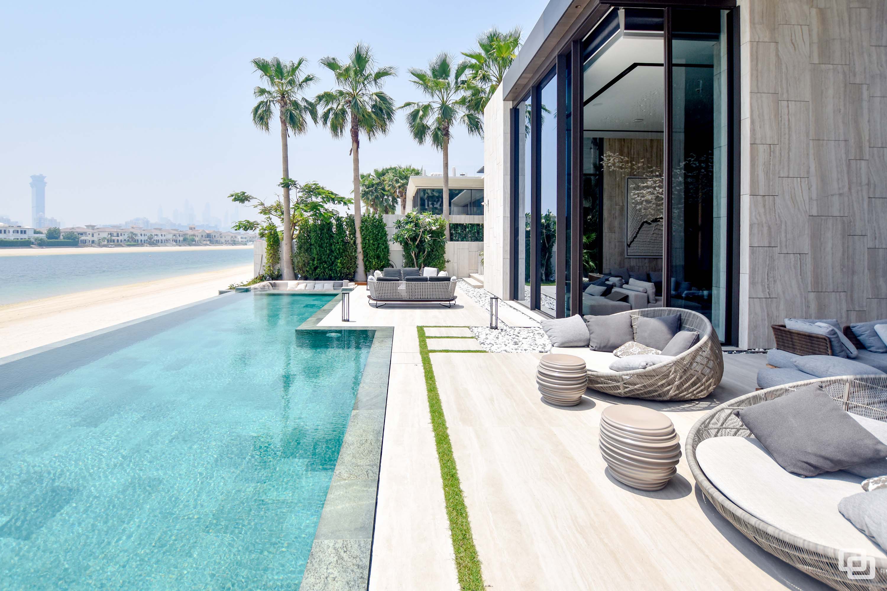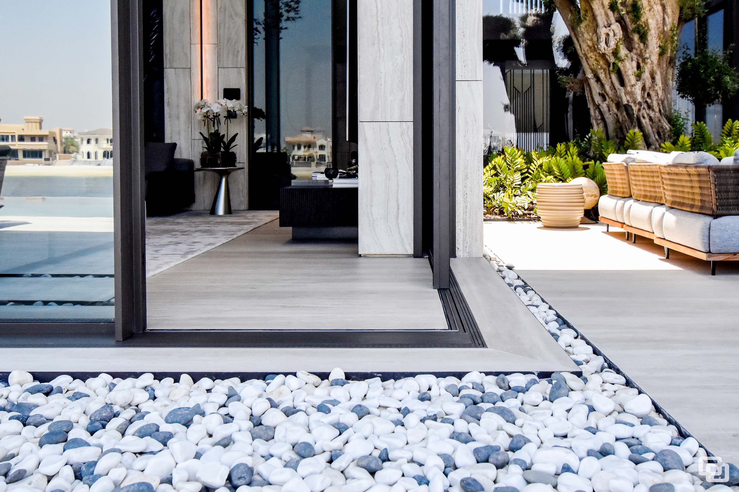 Located on the prestigious strip of Billionaires Row on Palm Jumeirah in Dubai, Kural Vista stands as a masterpiece. This exceptional villa has been installed with Gracili Minimal Systems® Glass Type: DS - 30 Grey + Extra Clear, RAL Colour: SD 2901 Grey SPMB, Roller Blind Sunscreen Fabric : Natte 380 002002 , Natte 380 010010, Roller Blind Blackout Fabric : Opacus Alu 0763