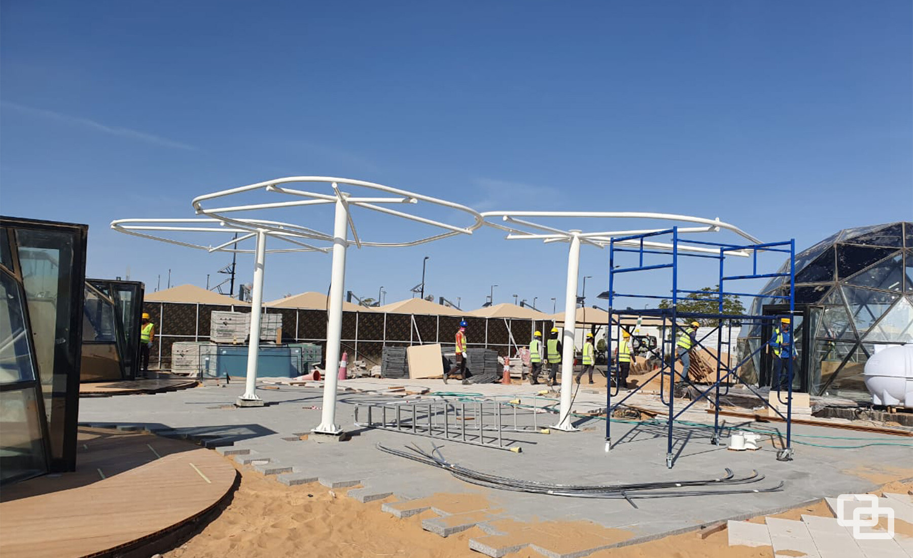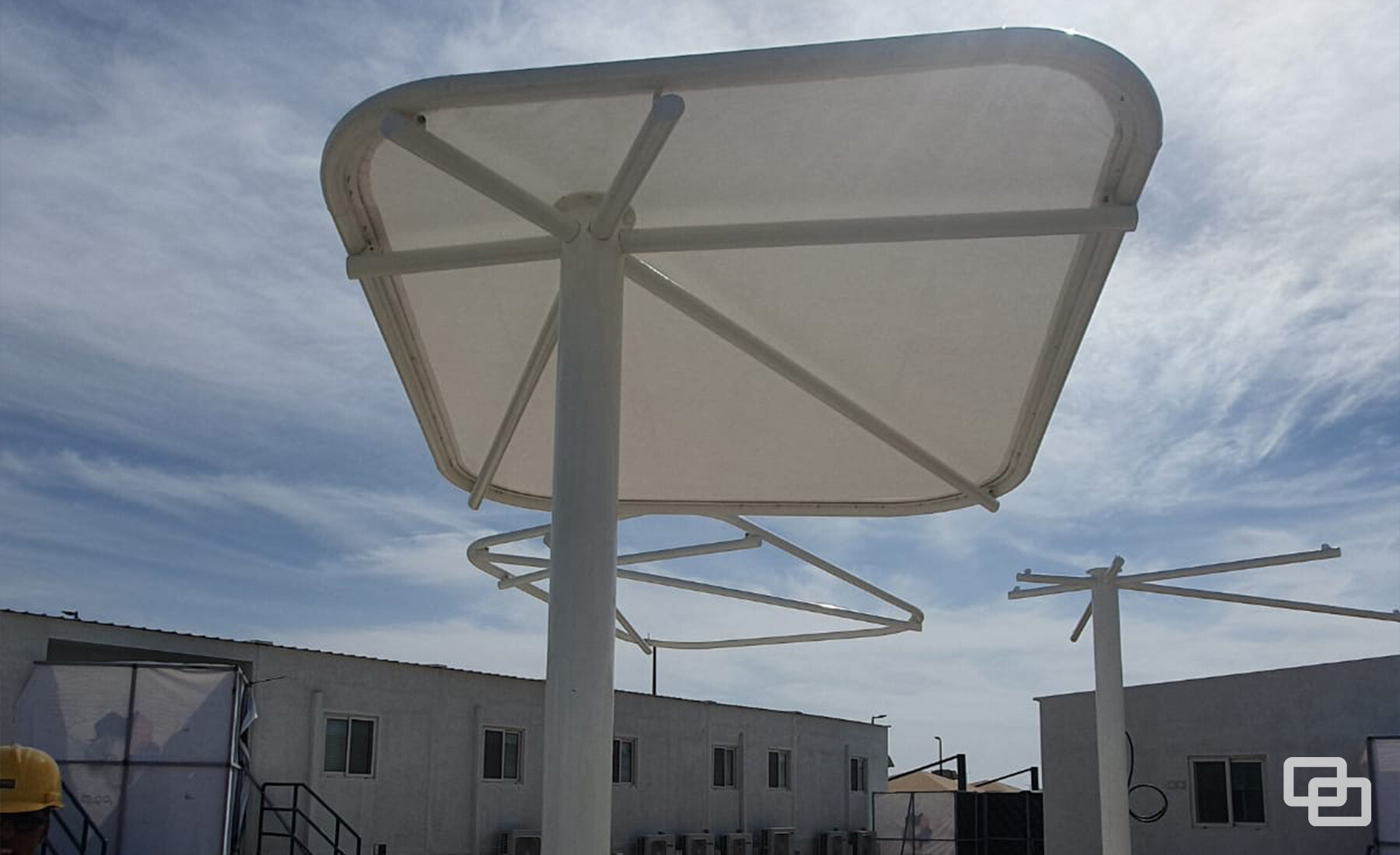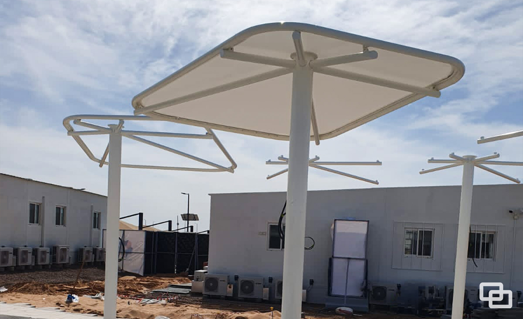 Fixed Parasol Shades can be customized accordingly, these are perfect for outdoor vicinities which are restrictive in space. Our team installed these at a project within Neom, KSA.