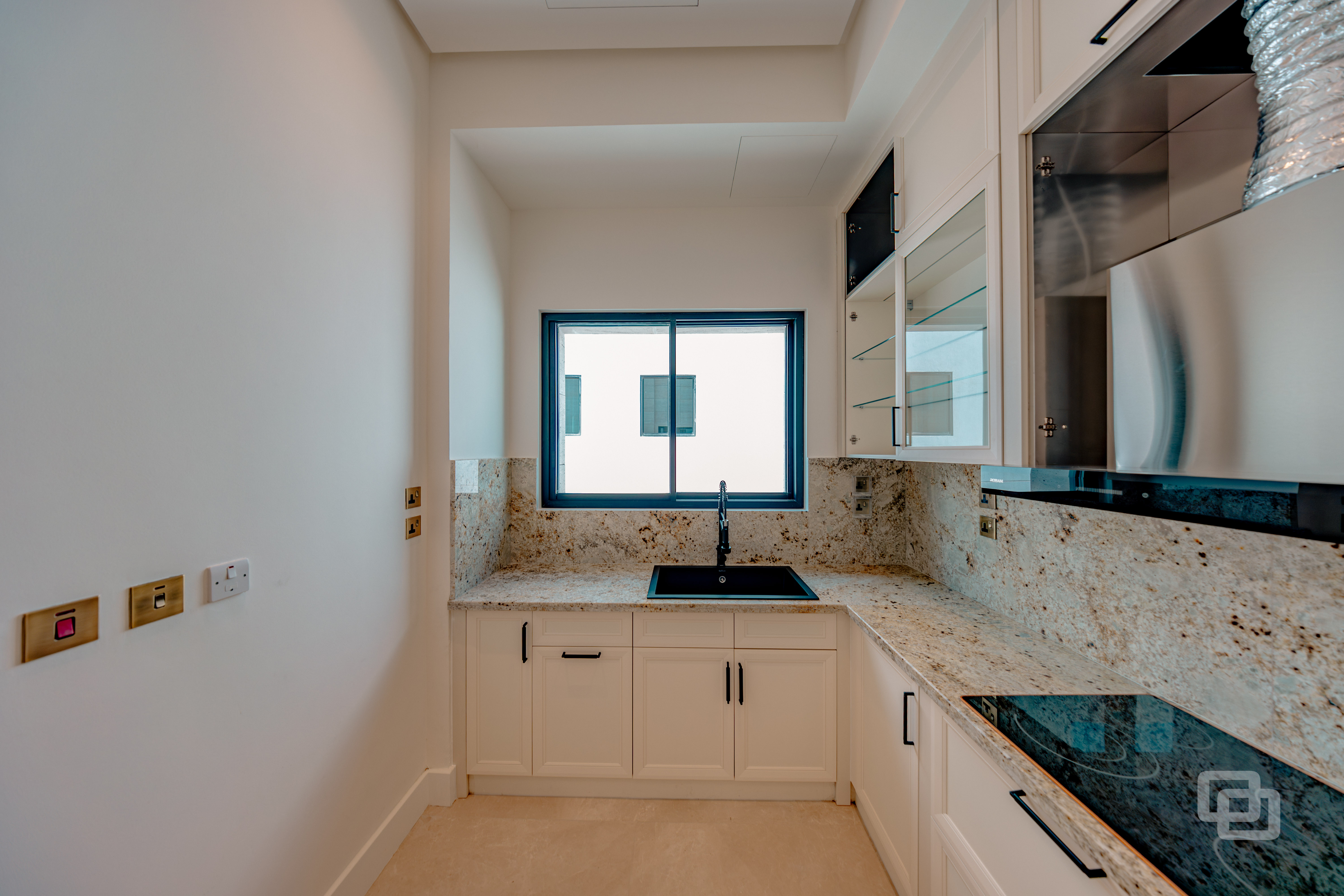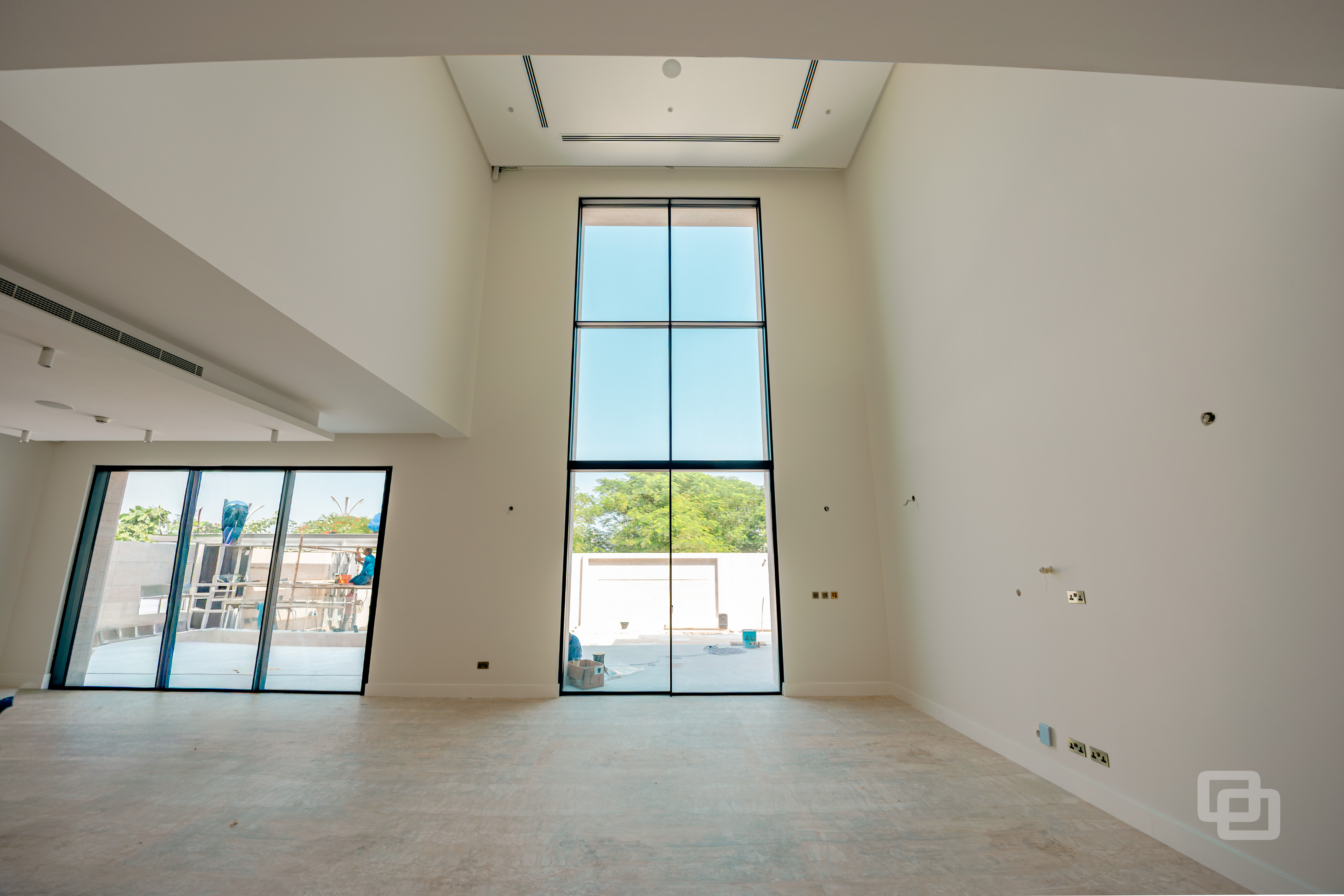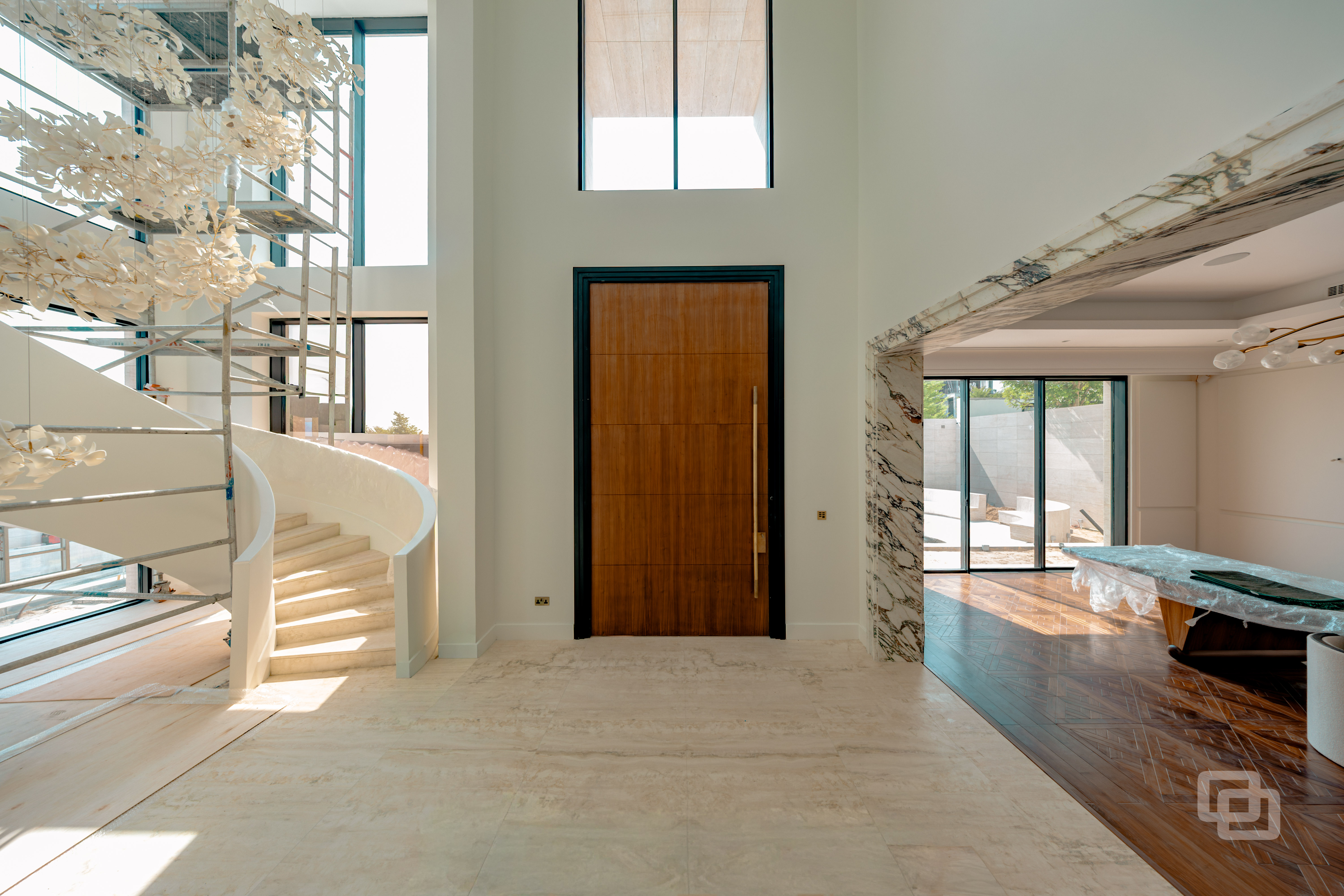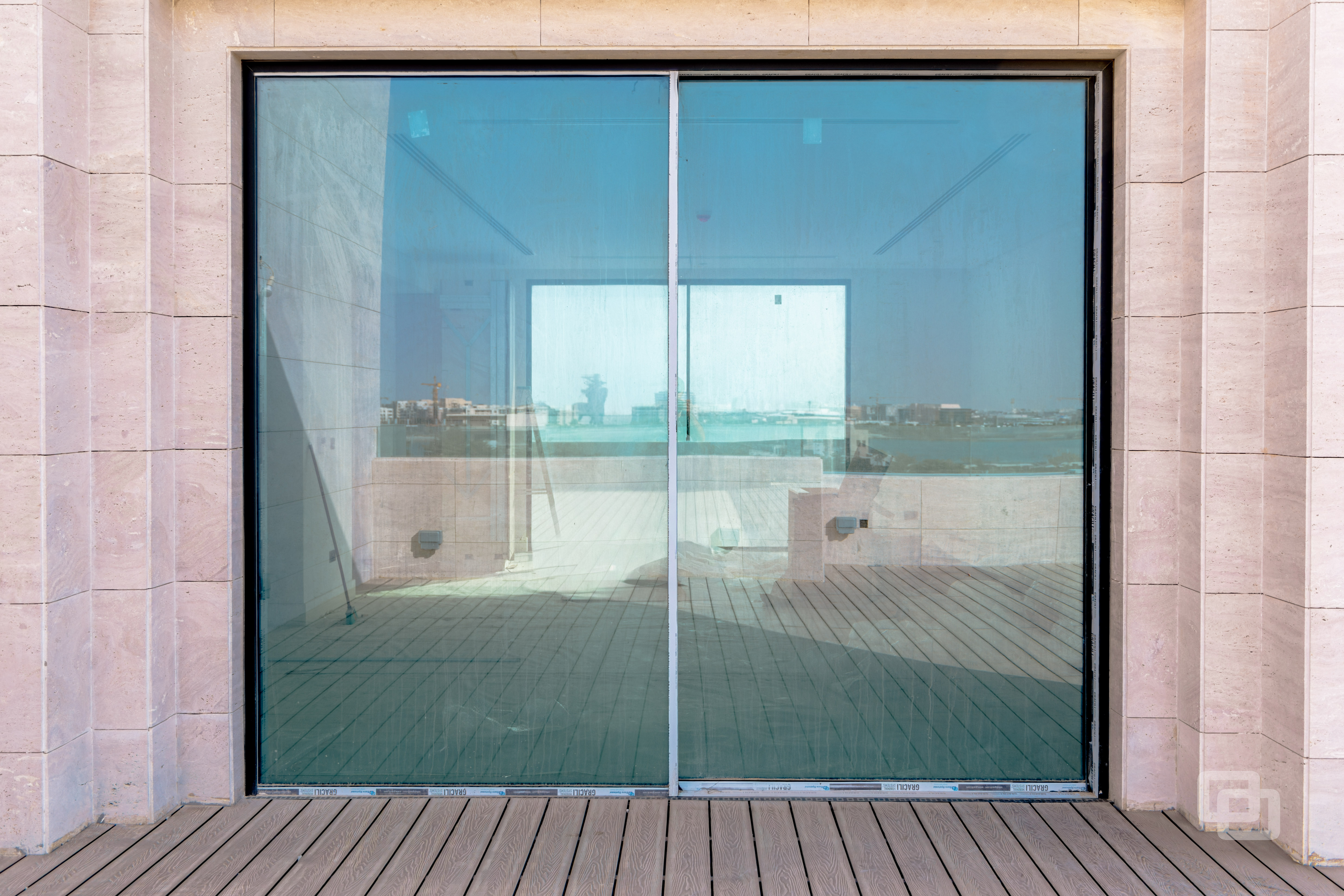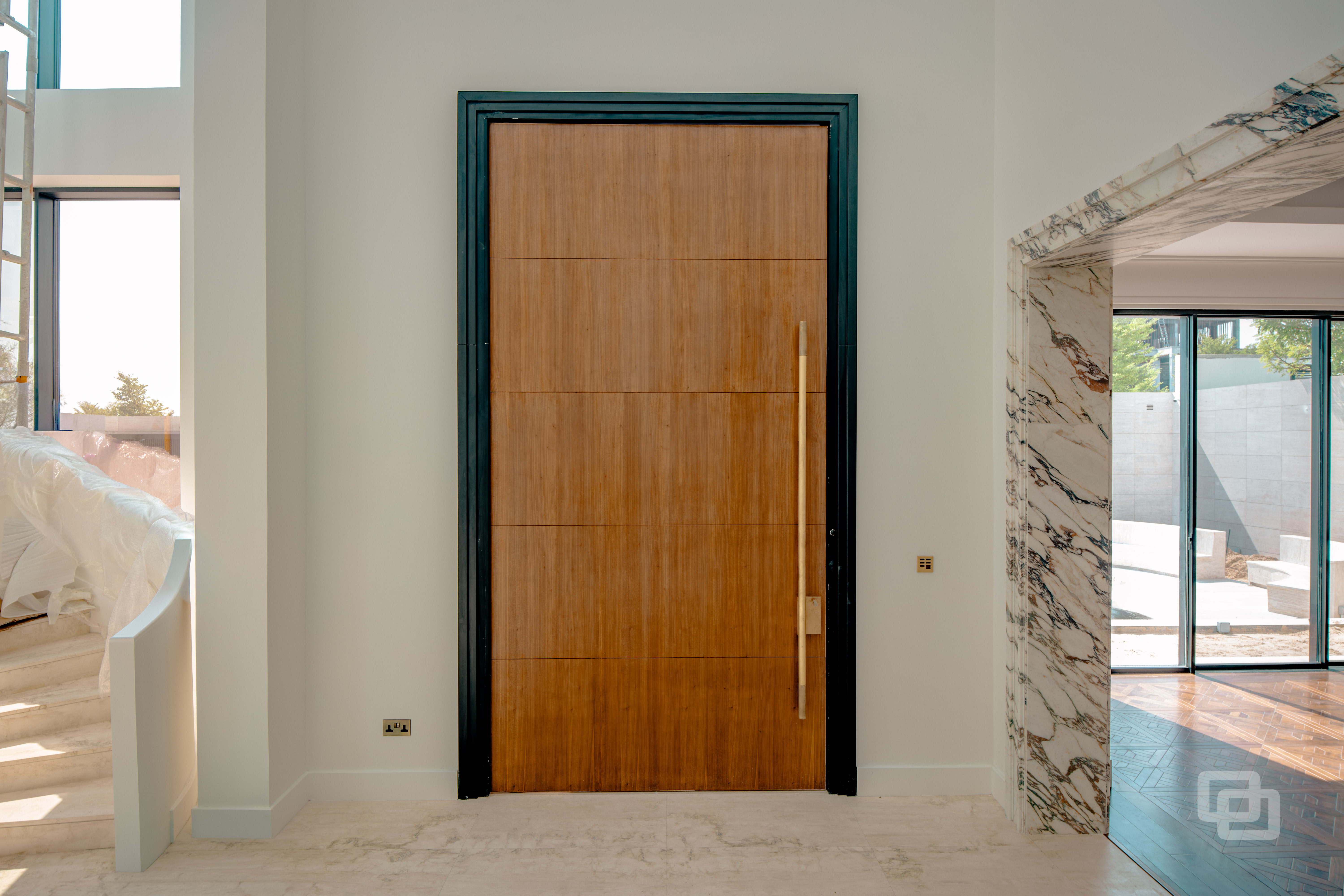 Gracili Minimal Systems®, Gracili® Minimal Facade, RK Entrance Pivot Door, Canopy, Aluminium ACP Cladding, Hinged Door, Handrails and Balustrades, Residential , QATAR