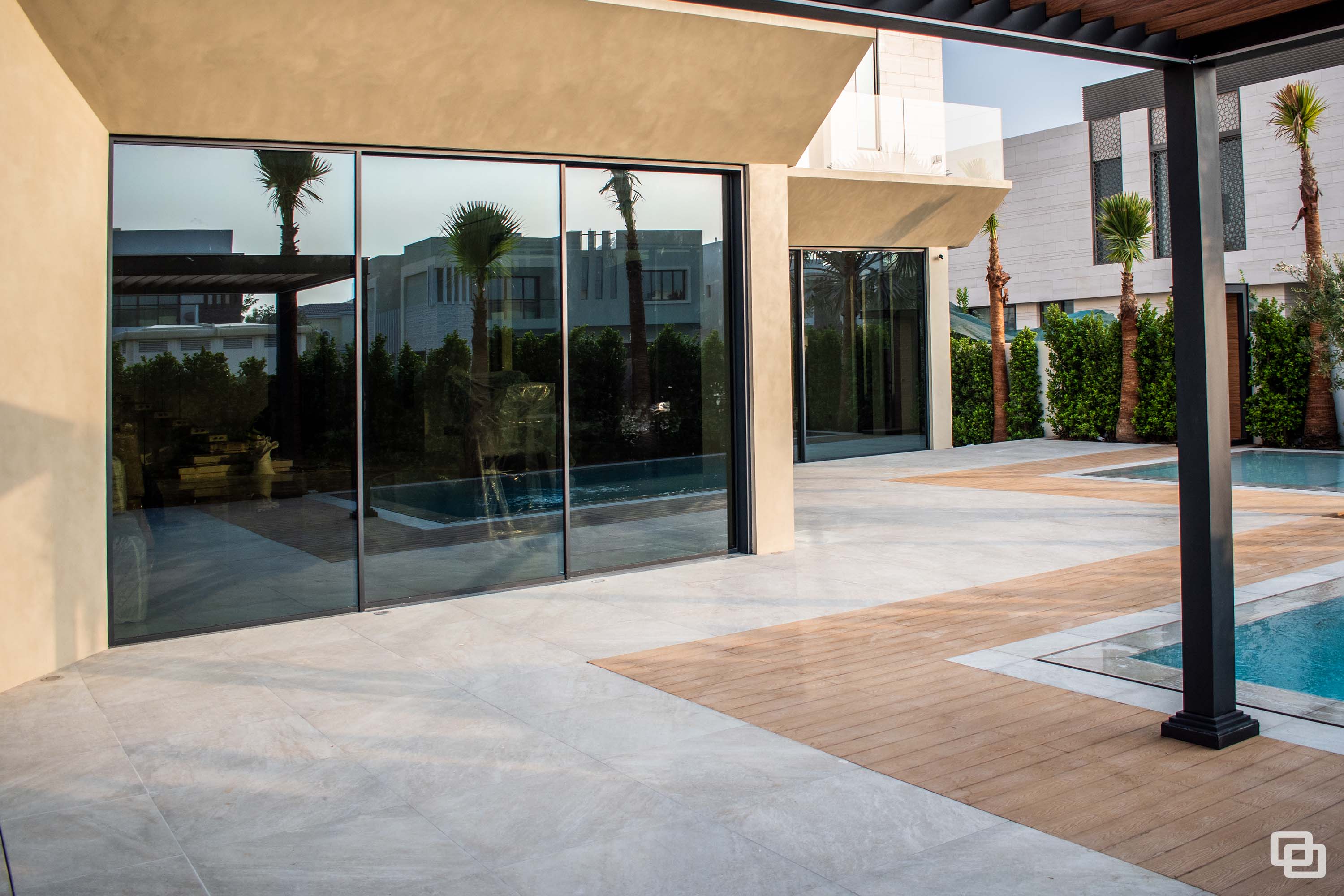 This private villa in Jumeirah Park has been installed by our teams with Gracili Minimal Systems®. Glass Type: SN 50 + Vitralite Bronze, RAL Colour: SDF 7016 SHR