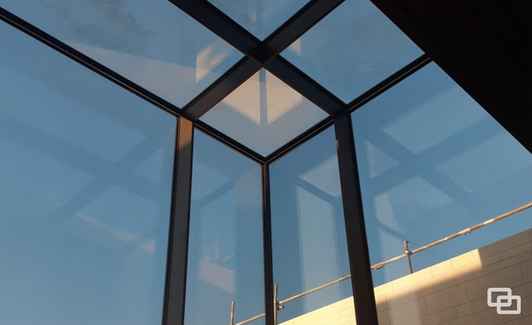 Our team installed Gracili Minimal Systems®, Minimal Facade, Minimal Skylight, Glass Type: Planitherm Total Low E, RAL Colour: Odesa 2525.