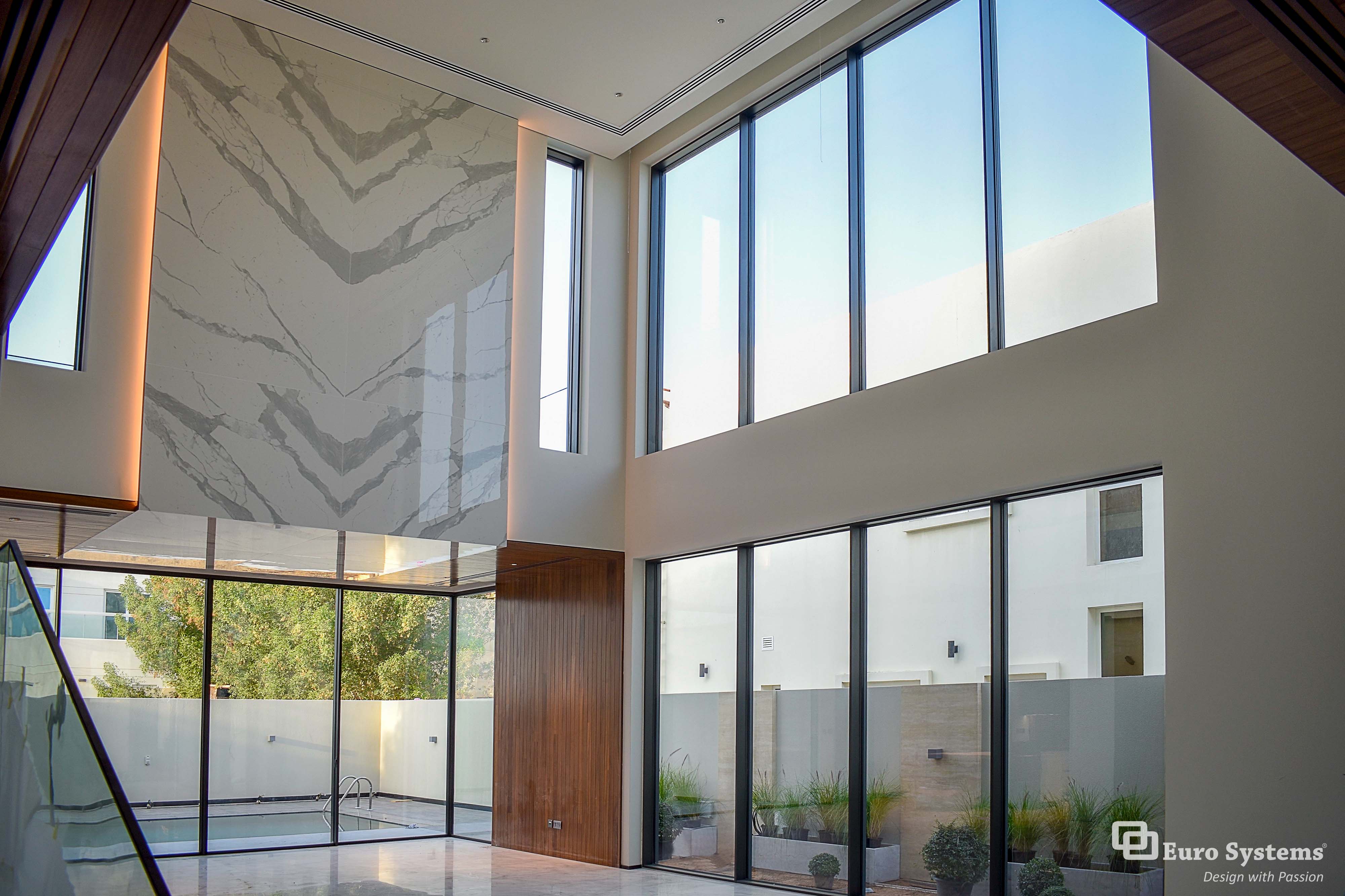 This beautiful private villa nestled in the uptown district of Mirdiff has been installed with Gracili Minimal Systems® and Minimal Facades.