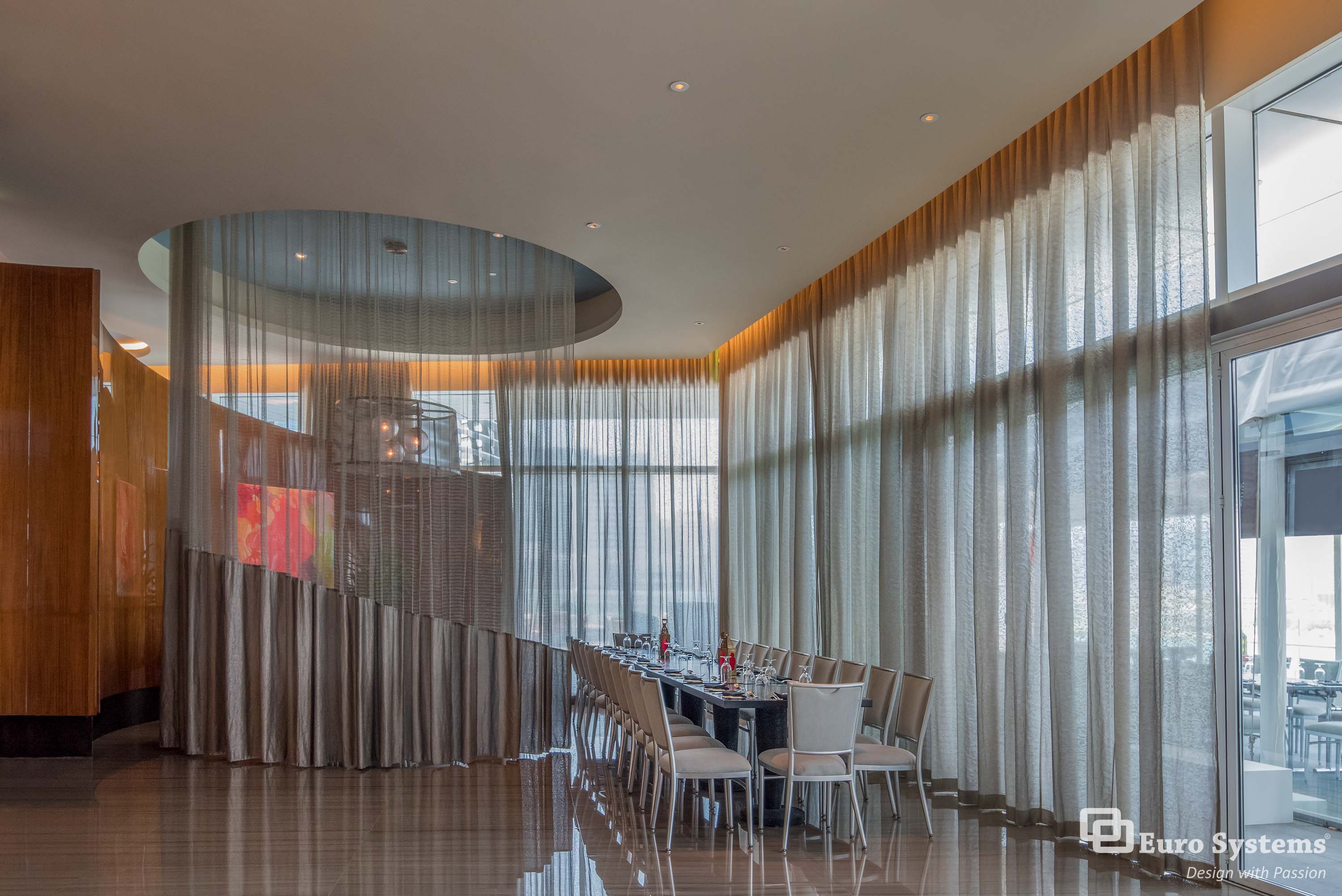 One of the premier luxury hotels in Abu Dhabi, Rosewood Abu Dhabi, is a 34-story tower offering luxurious accommodation. Our team installed bespoke Draperies and Curtains. We specialize in interior shadings for the hospitality sector.