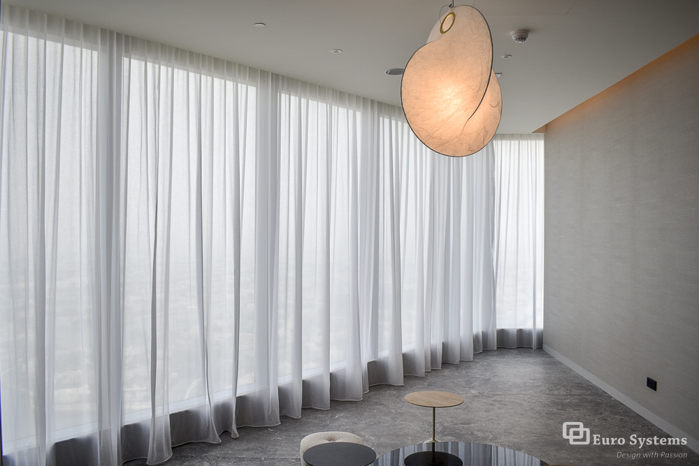 Uptown Dubai is a world-class smart district designed as a true urban destination for people to live, work and thrive. Our specialist interior team installed Serena 95 Motorized Curtains from our bespoke collection of fabrics.