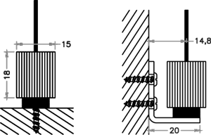 The foot for guide wire can be installed in different ways as per site conditions directly to the sill, on the recess or directly to the wall. The images show the different installation methods for the foot for guide wire.