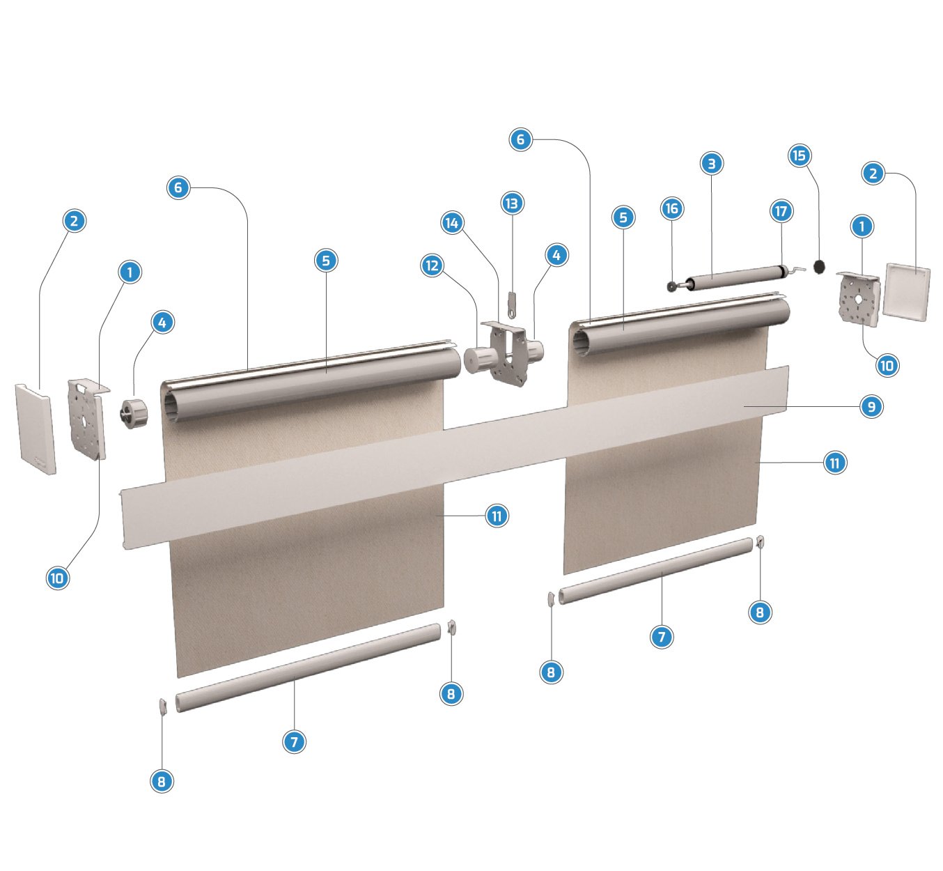 - Double blind with single brackets to install both sunscreen & blackout blinds in a single window